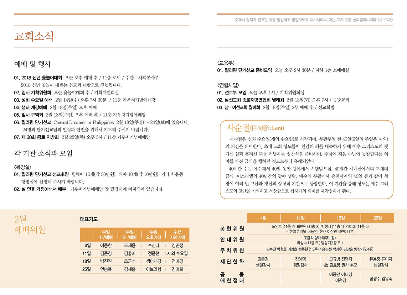 교회소식 교회소식주보 교회소식 주보 교회소식주보 2018년 2월 11일 주일주보 주보 2018-02-10 박성식 첨부파일 중앙교회_주보_thumnail.jpg 중앙교회_주보_180211_01.jpg 중앙교회_주보_180211_03.jpg 중앙교회_주보_180211_02.jpg 중앙교회_주보_180211_04.jpg 목록 이전 :: 2018년 2월 4일 주일... 2018년 2월 18일 주일... :: 다음
