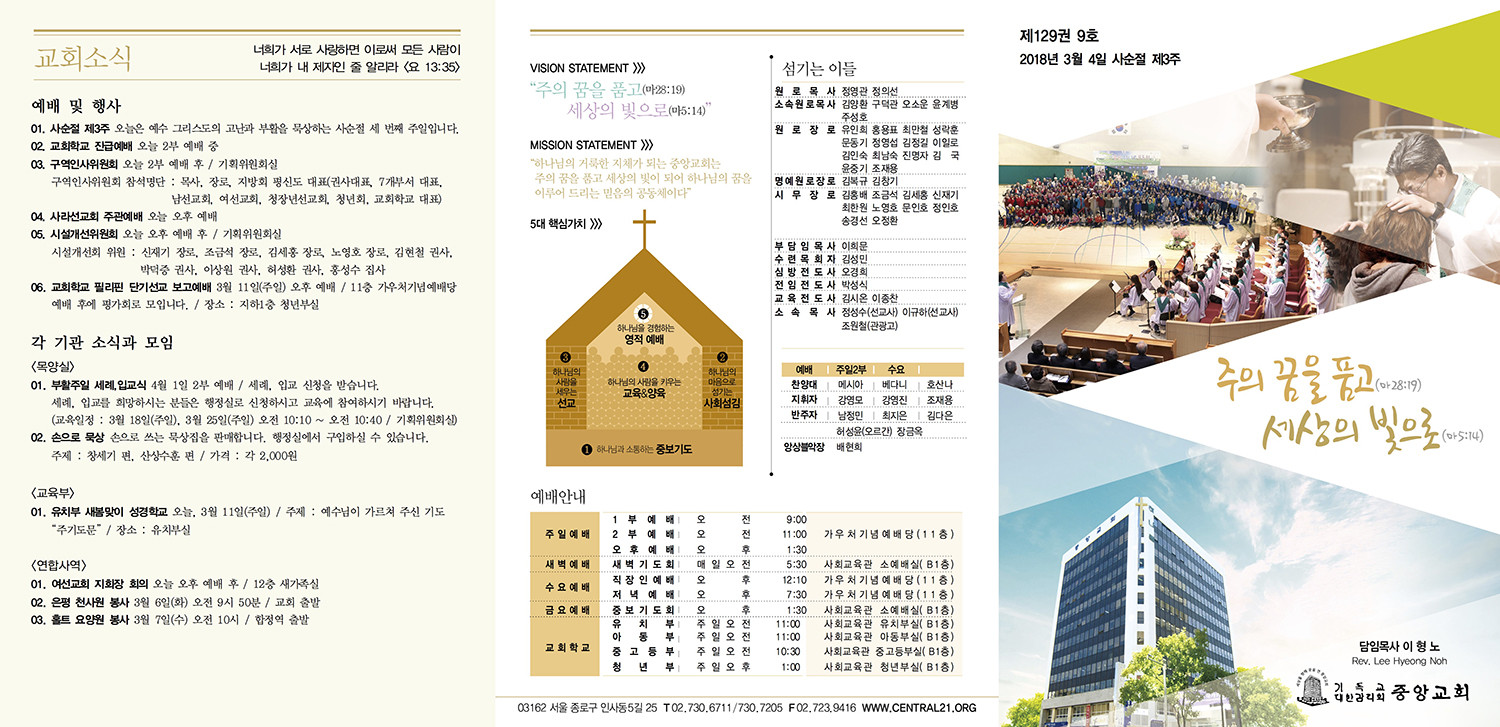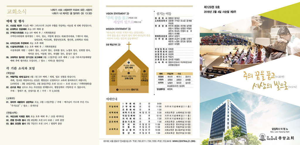 교회소식 교회소식주보 교회소식 주보 교회소식주보 2018년 3월 4일 주일주보 주보 2018-03-03 박성식 첨부파일 중앙교회_주보_thumnail.jpg 20180304_중앙주보_1.jpg 20180304_중앙주보_2.jpg 목록 이전 :: 2018년 2월 25일 주일... 2018년 3월 11일 주일... :: 다음