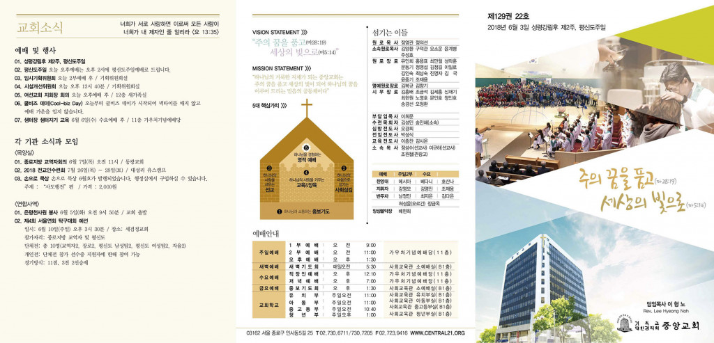 교회소식 교회소식주보 교회소식 주보 교회소식주보 2018년 6월 3일 주일주보 주보 2018-06-02 박성식 첨부파일 중앙교회_주보_thumnail.jpg 20180603_중앙새주보_1.jpg 20180603_중앙새주보_2.jpg 목록 이전 :: 2018년 5월 27일 주일... 2018년 6월 10일 주일... :: 다음