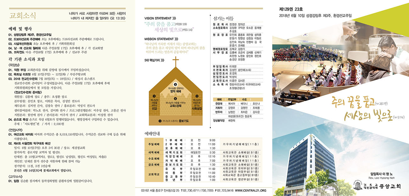 교회소식 교회소식주보 교회소식 주보 교회소식주보 2018년 6월 10일 주일주보 주보 2018-06-09 박성식 첨부파일 중앙교회_주보_thumnail.jpg 20180610_중앙새주보_2.jpg 20180610_중앙새주보_1.jpg 20180610_중앙새주보_2.jpg 20180610_중앙새주보_1.jpg 목록 이전 :: 2018년 6월 3일 주일... 2018년 6월 17일 주일... :: 다음