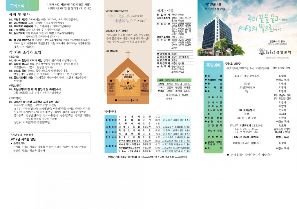 교회소식 교회소식주보 교회소식 주보 교회소식주보 2019년 1월 27일 주일주보 주보 2019-01-26 김성민 첨부파일 중앙교회_주보(2019)_thumnail.jpg 중앙새주보_190127_페이지_2.jpg 중앙새주보_190127_페이지_1.jpg 목록 이전 :: 2019년 1월 20일 주일... 2019년 2월 3일 주일... :: 다음