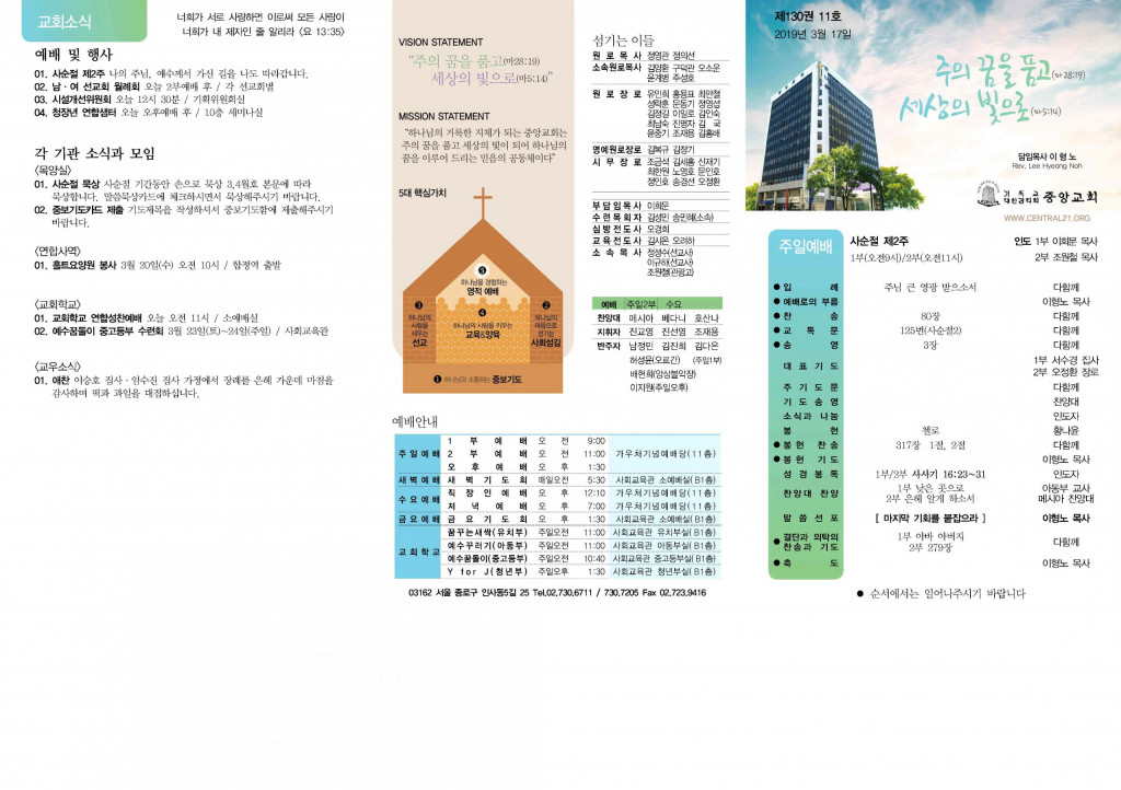 교회소식 교회소식주보 교회소식 주보 교회소식주보 2019년 3월 17일 주일주보 주보 2019-03-16 김성민 첨부파일 중앙교회_주보(2019)_thumnail.jpg 중앙새주보_190317_페이지_1.jpg 중앙새주보_190317_페이지_2.jpg 목록 이전 :: 2019년 3월 10일 주일... 2019년 3월 24일 주일... :: 다음