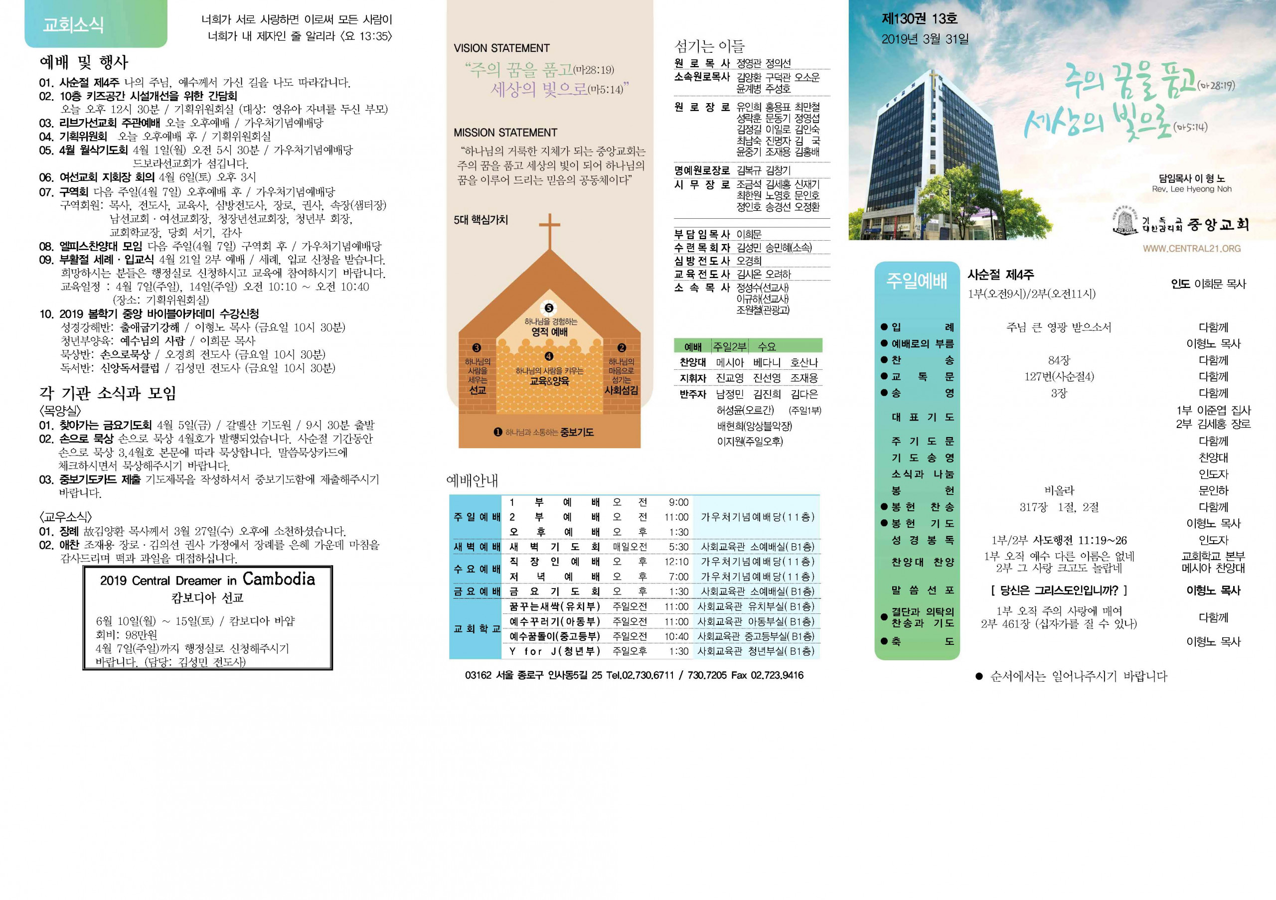교회소식 교회소식주보 교회소식 주보 교회소식주보 2019년 3월 31일 주일주보 주보 2019-03-29 김성민 첨부파일 중앙교회_주보(2019)_thumnail.jpg 중앙교회_주보(2019)_thumnail.jpg 중앙새주보_190331_페이지_1.jpg 중앙새주보_190331_페이지_2.jpg 목록 이전 :: 2019년 3월 24일 주일... 2019년 4월 7일 주일... :: 다음