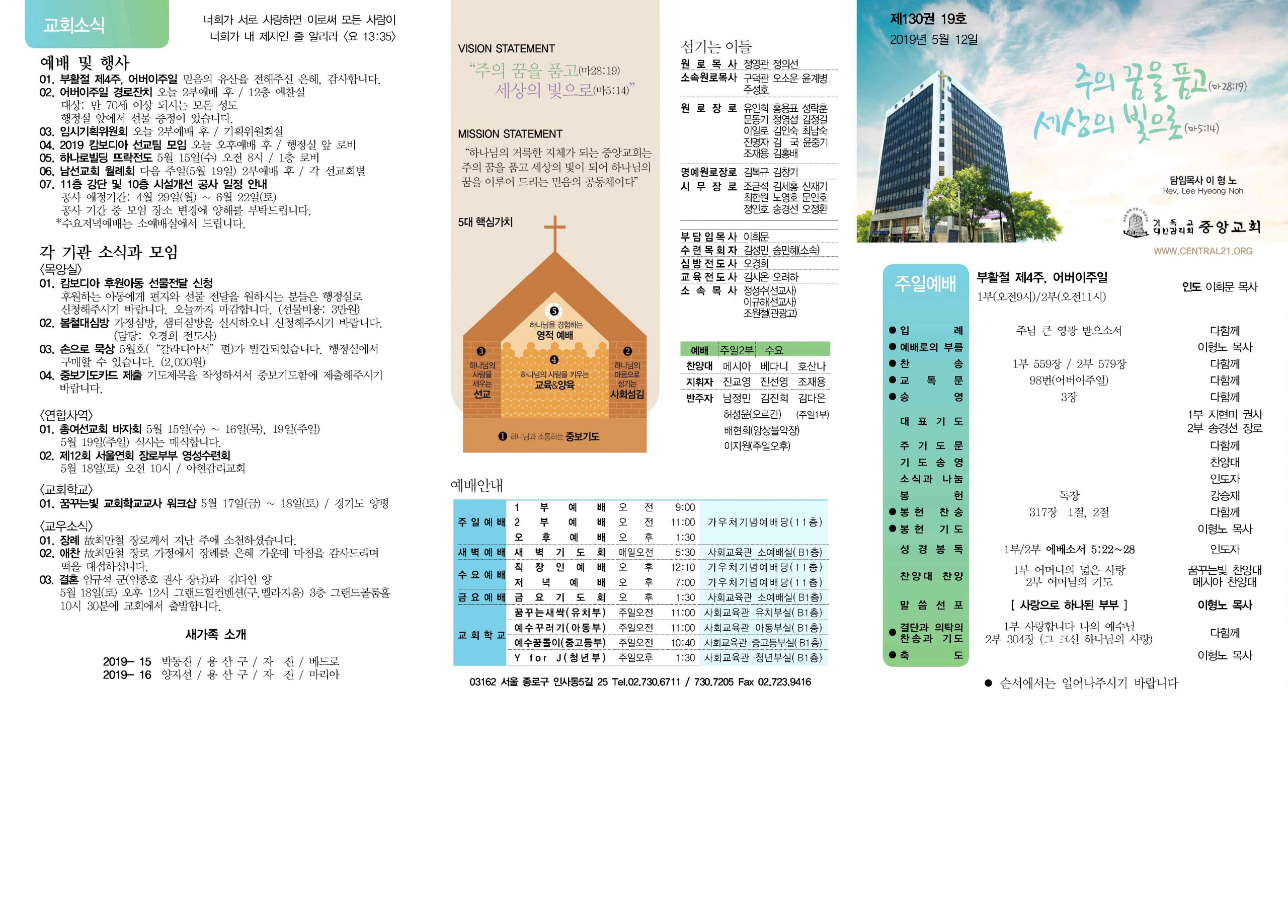 교회소식 교회소식주보 교회소식 주보 교회소식주보 2019년 5월 12일 주일주보 주보 2019-05-11 김성민 첨부파일 중앙교회_주보(2019)_thumnail.jpg 중앙새주보_190512_페이지_1.jpg 중앙새주보_190512_페이지_2.jpg 중앙교회_주보(2019)_thumnail.jpg 중앙새주보_190512_페이지_1.jpg 중앙새주보_190512_페이지_2.jpg 목록 이전 :: 2019년 5월 5일 주일... 2019년 5월 19일 주일... :: 다음