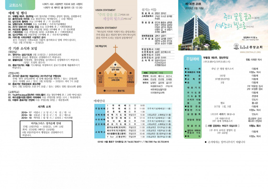 교회소식 교회소식주보 교회소식 주보 교회소식주보 2019년 5월 19일 주일주보 주보 2019-05-18 김성민 첨부파일 중앙교회_주보(2019)_thumnail.jpg 중앙새주보_190519_페이지_1.jpg 중앙새주보_190519_페이지_2.jpg 목록 이전 :: 2019년 5월 12일 주일... 2019년 5월 26일 주일... :: 다음