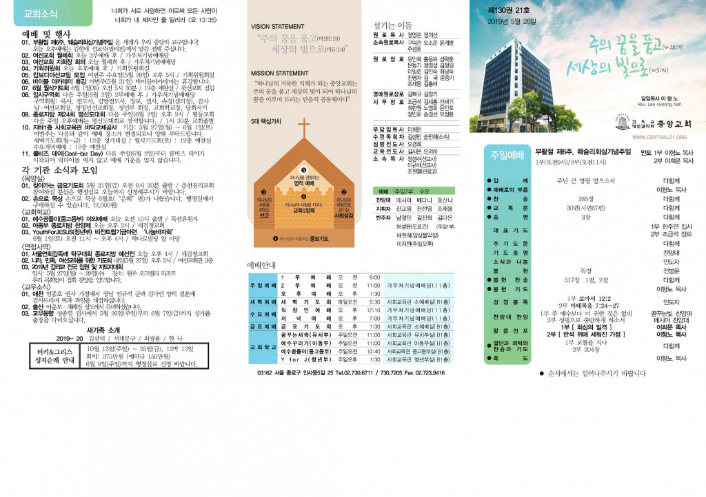 교회소식 교회소식주보 교회소식 주보 교회소식주보 2019년 5월 26일 주일주보 주보 2019-05-25 김성민 첨부파일 중앙교회_주보(2019)_thumnail.jpg 중앙새주보_190526_페이지_2.jpg 중앙새주보_190526_페이지_1.jpg 목록 이전 :: 2019년 5월 19일 주일... 2019년 6월 2일 주일... :: 다음