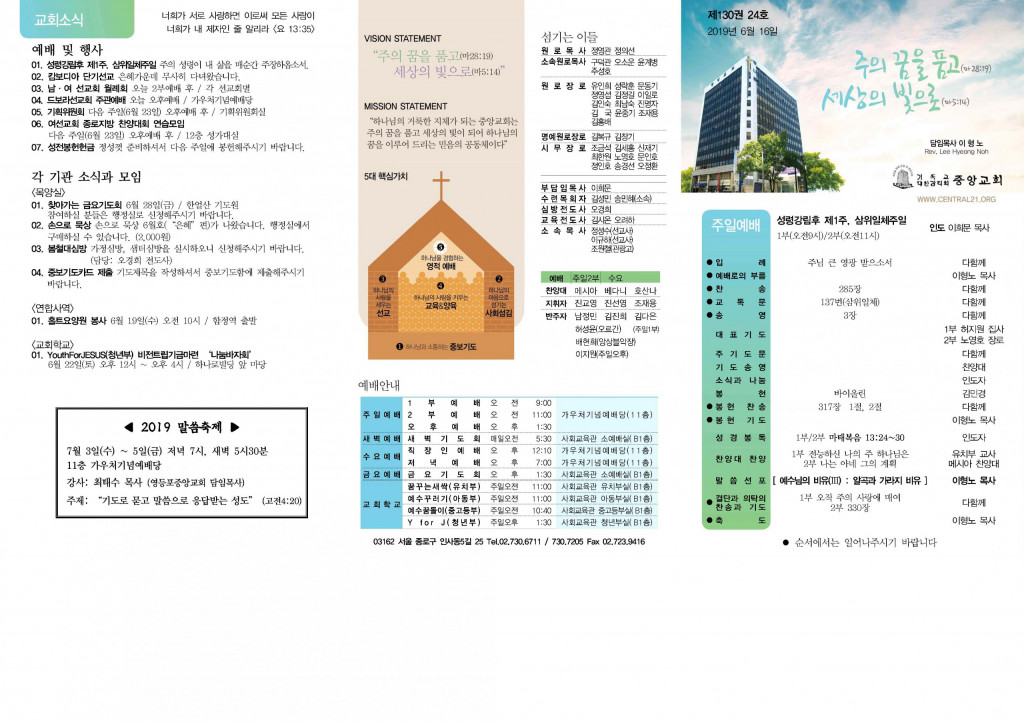 교회소식 교회소식주보 교회소식 주보 교회소식주보 2019년 6월 16일 주일주보 주보 2019-06-15 김성민 첨부파일 중앙교회_주보(2019)_thumnail.jpg 새주보_190616_페이지_1.jpg 새주보_190616_페이지_2.jpg 목록 이전 :: 2019년 6월 9일 주일... 2019년 6월 23일 주일... :: 다음