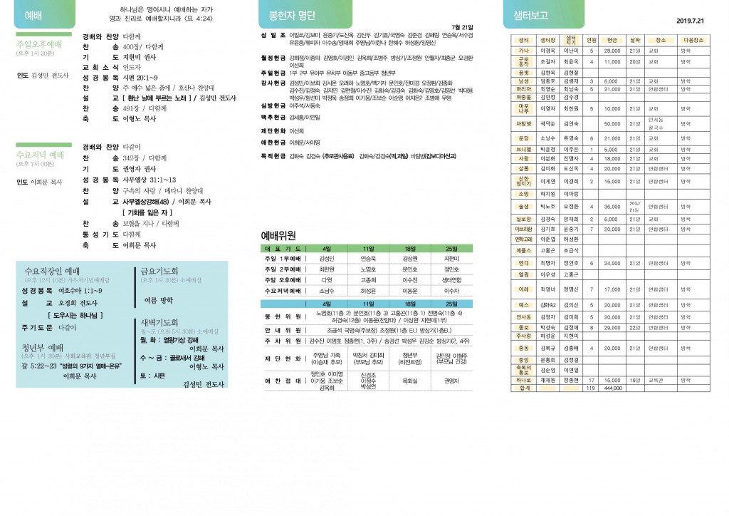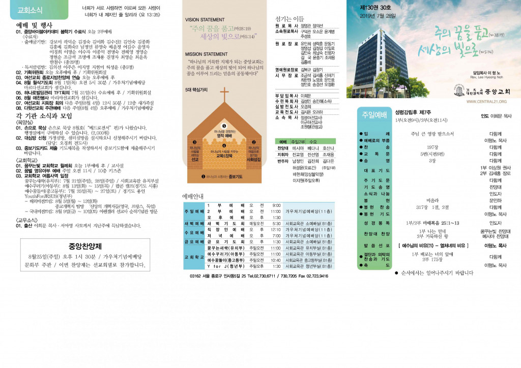교회소식 교회소식주보 교회소식 주보 교회소식주보 2019년 7월 28일 주일주보 주보 2019-07-27 김성민 첨부파일 중앙교회_주보(2019)_thumnail.jpg 중앙새주보_190728_페이지_1.jpg 중앙새주보_190728_페이지_2.jpg 목록 이전 :: 2019년 7월 21일 주일... 2019년 8월 4일 주일... :: 다음