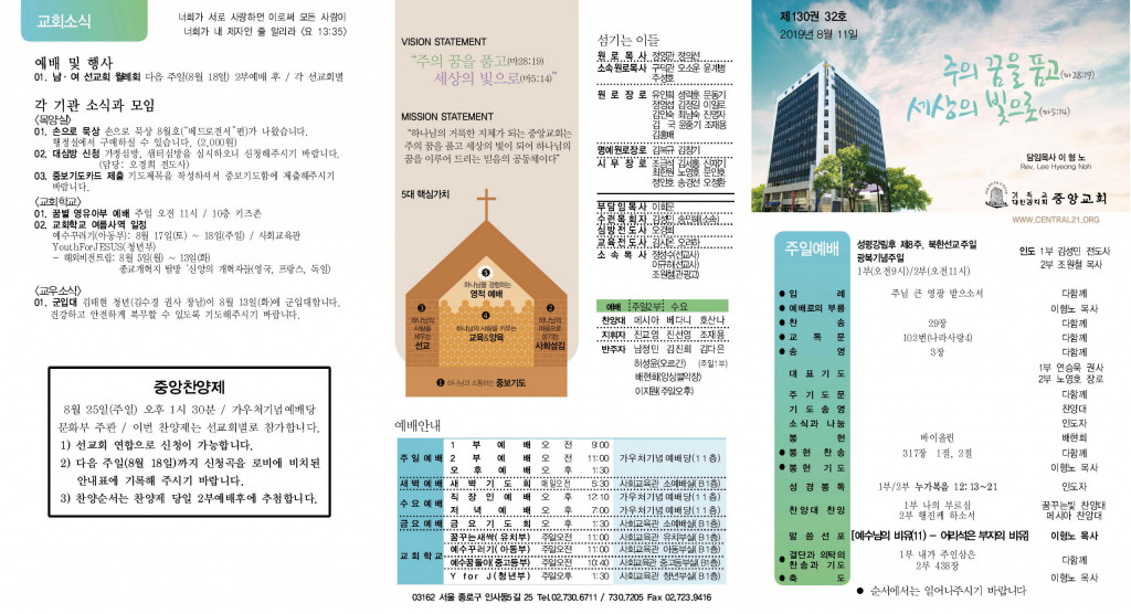 교회소식 교회소식주보 교회소식 주보 교회소식주보 2019년 8월 11일 주일주보 주보 2019-08-10 김성민 첨부파일 중앙교회_주보(2019)_thumnail.jpg 중앙새주보_190811_페이지_1.jpg 중앙새주보_190811_페이지_2.jpg 목록 이전 :: 2019년 8월 4일 주일... 2019년 8월 18일 주일... :: 다음