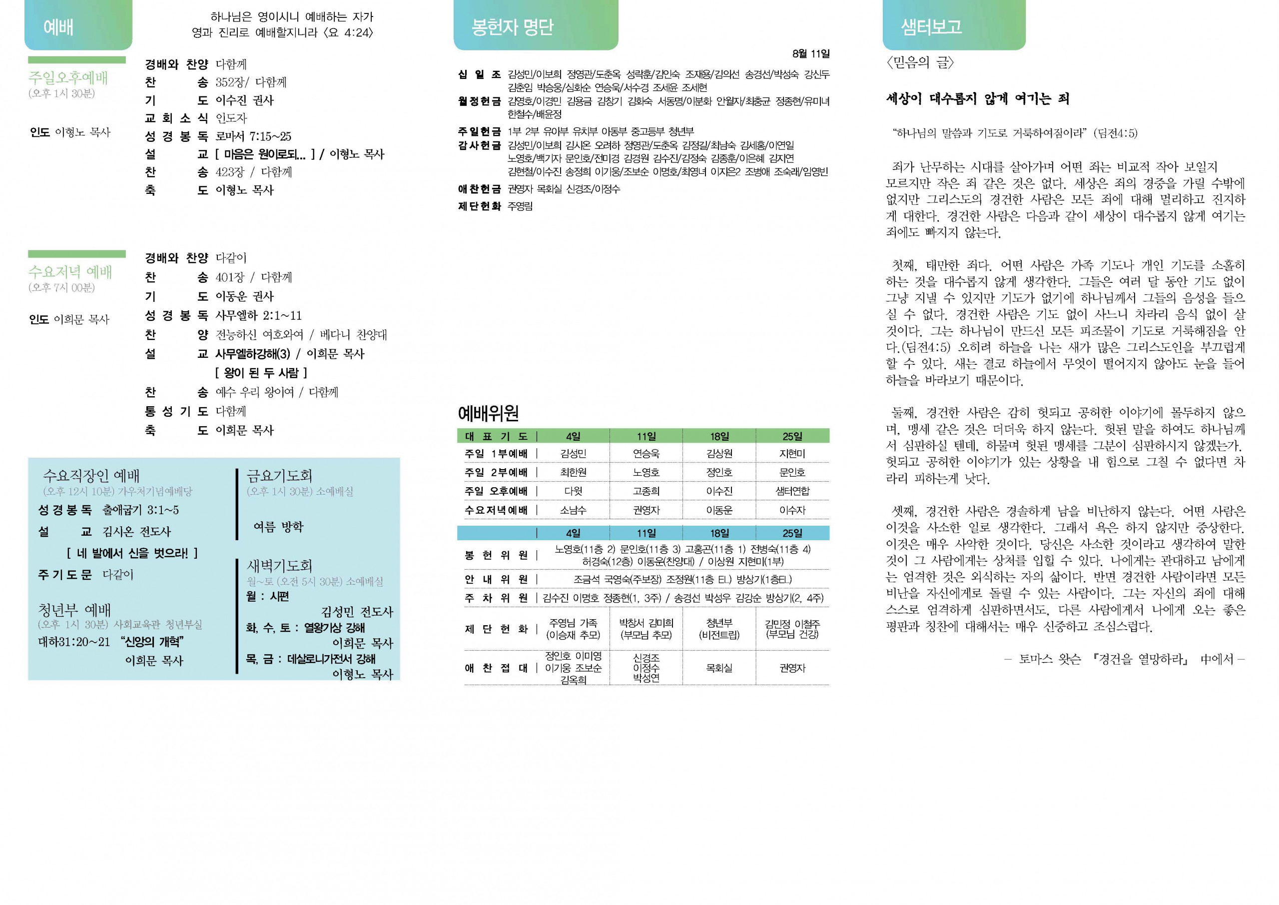 교회소식 교회소식주보 교회소식 주보 교회소식주보 2019년 8월 18일 주일주보 주보 2019-08-17 김성민 첨부파일 중앙교회_주보(2019)_thumnail.jpg 중앙새주보_190818_페이지_1.jpg 중앙새주보_190818_페이지_2.jpg 목록 이전 :: 2019년 8월 11일 주일... 2019년 8월 25일 주일... :: 다음