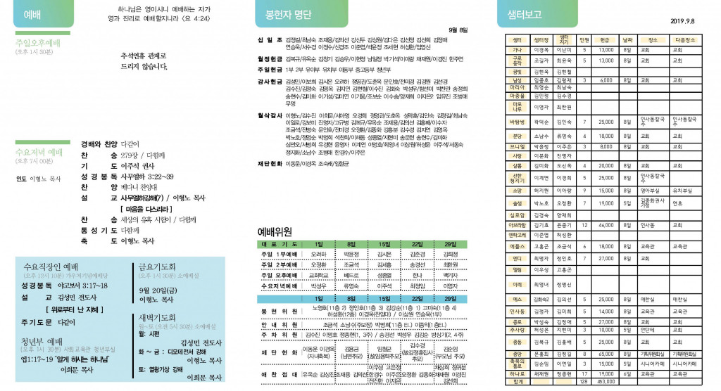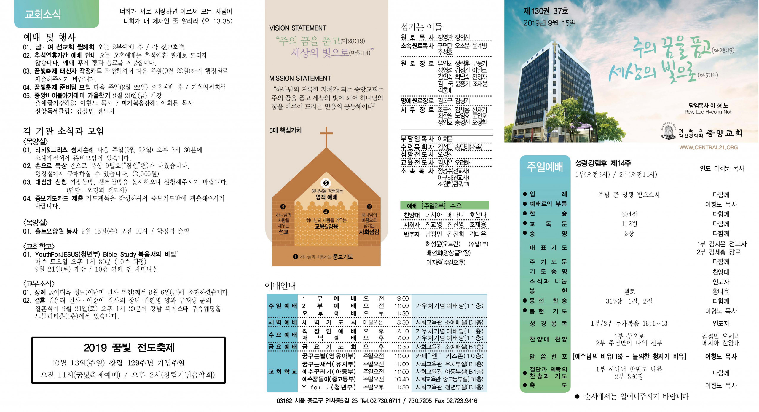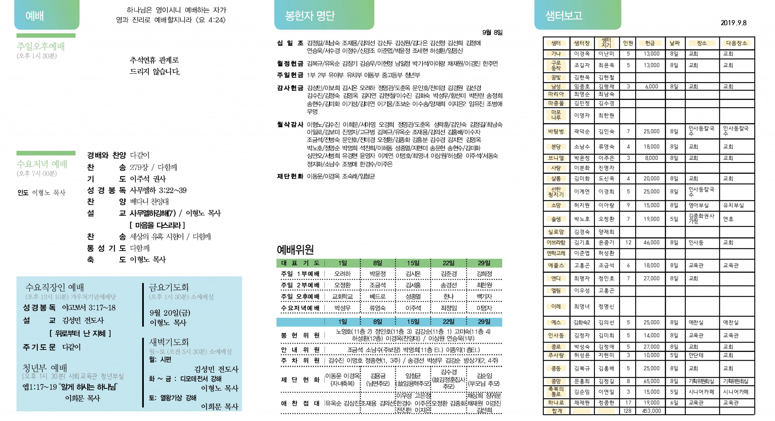교회소식 교회소식주보 교회소식 주보 교회소식주보 2019년 9월 15일 주일주보 주보 2019-09-14 김성민 첨부파일 중앙교회_주보(2019)_thumnail.jpg 중앙새주보_190915_페이지_1.jpg 중앙새주보_190915_페이지_2.jpg 목록 이전 :: 2019년 9월 8일 주일... 2019년 9월 22일 주일... :: 다음