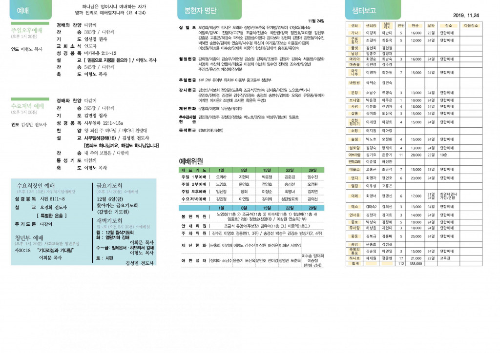 교회소식 교회소식주보 교회소식 주보 교회소식주보 2019년 12월 1일 주일주보 주보 2019-11-30 김성민 첨부파일 중앙교회_주보(2019)_thumnail.jpg 중앙새주보_191201_페이지_1.jpg 중앙새주보_191201_페이지_2.jpg 목록 이전 :: 2019년 11월 24일 주... 2019년 12월 8일 주일... :: 다음