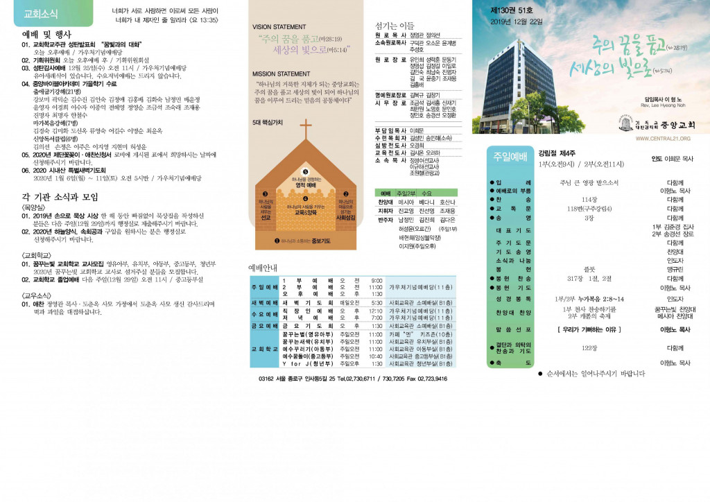 교회소식 교회소식주보 교회소식 주보 교회소식주보 2019년 12월 22일 주일주보 주보 2019-12-21 김성민 첨부파일 중앙교회_주보(2019)_thumnail.jpg 중앙새주보_191222_페이지_1.jpg 중앙새주보_191222_페이지_2.jpg 목록 이전 :: 2019년 12월 15일 주... 2019년 12월 29일 주... :: 다음