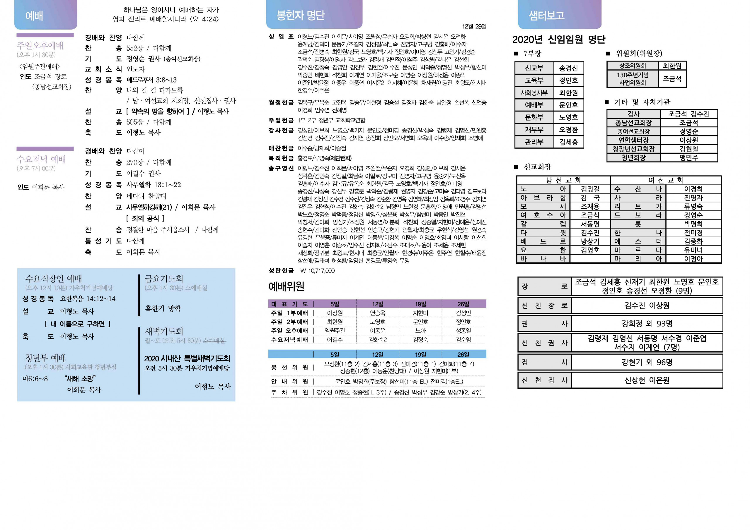 교회소식 교회소식주보 교회소식 주보 교회소식주보 2020년 1월 5일 주일주보 주보 2020-01-04 김성민 첨부파일 2020주보.PNG 중앙새주보_20200105_페이지_1.jpg 중앙새주보_20200105_페이지_2.jpg 목록 이전 :: 2019년 12월 29일 주... 2020년 1월 12일 주일... :: 다음