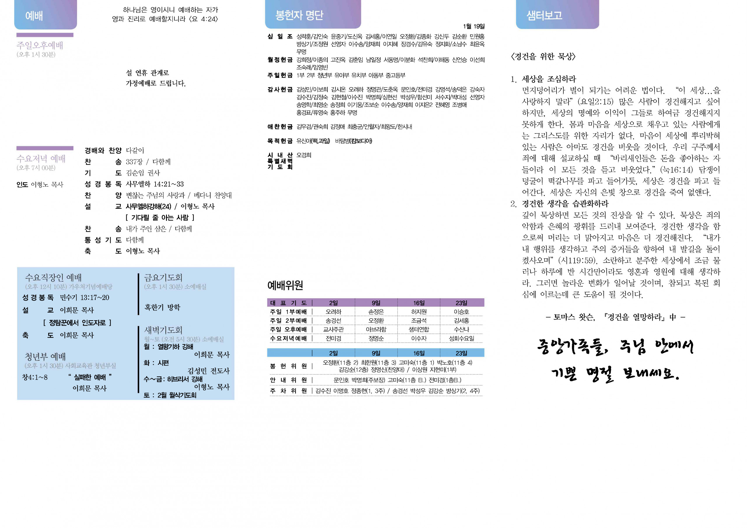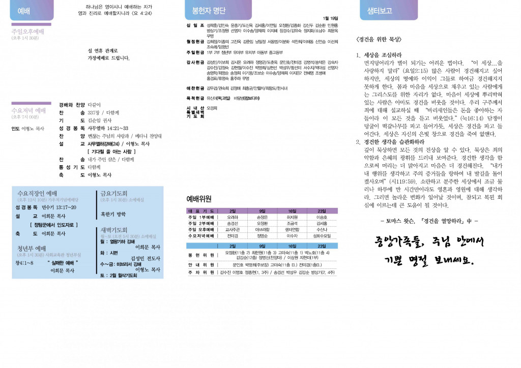 교회소식 교회소식주보 교회소식 주보 교회소식주보 2020년 1월 26일 주일주보 주보 2020-01-23 김성민 첨부파일 2020주보.PNG 중앙새주보_20200126_페이지_1.jpg 중앙새주보_20200126_페이지_2.jpg 목록 이전 :: 2020년 1월 19일 주일... 2020년 2월 2일 주일... :: 다음