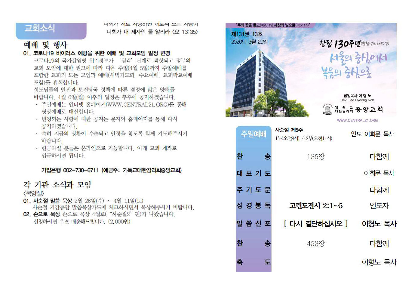 교회소식 교회소식주보 교회소식 주보 교회소식주보 2020년 3월 29일 주일주보 주보 2020-03-29 김성민 첨부파일 2020주보.PNG 빈 문서 1_페이지_2.jpg 빈 문서 1_페이지_1.jpg 목록 이전 :: 2020년 3월 22일 주일... 2020년 4월5일 주일주... :: 다음