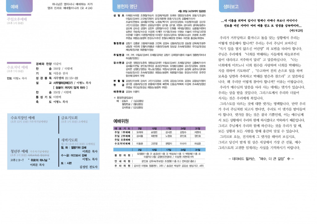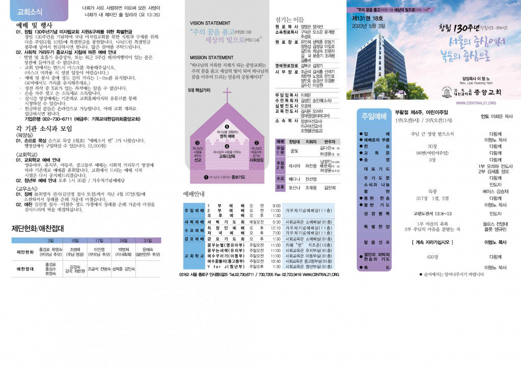 교회소식 교회소식주보 교회소식 주보 교회소식주보 2020년 5월 3일 주일주보 주보 2020-05-02 김성민 첨부파일 2020주보.PNG 중앙새주보_20200503_페이지_1.jpg 중앙새주보_20200503_페이지_2.jpg 목록 이전 :: 2020년 4월 26일 주일... 2020년 5월 10일 주일... :: 다음