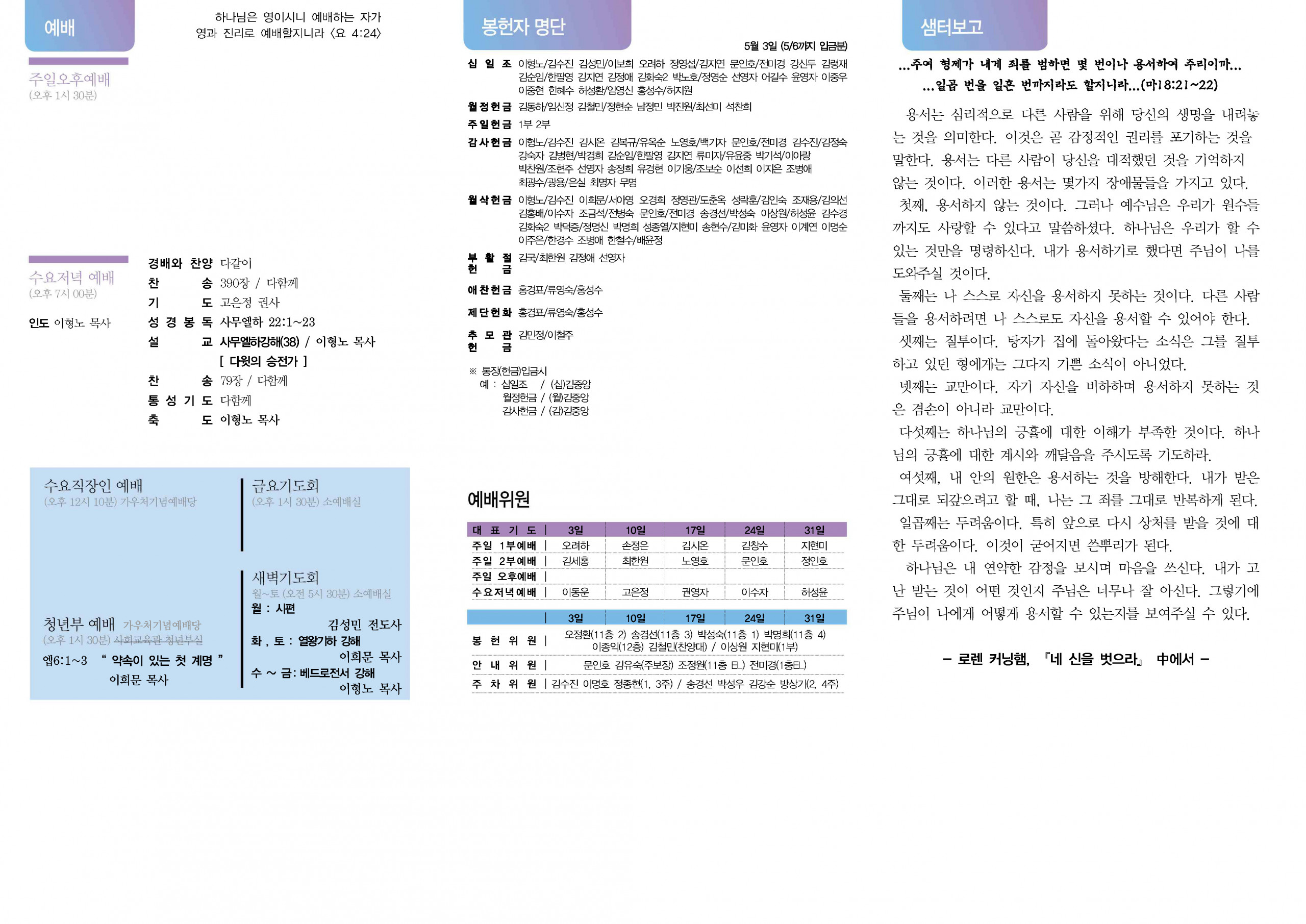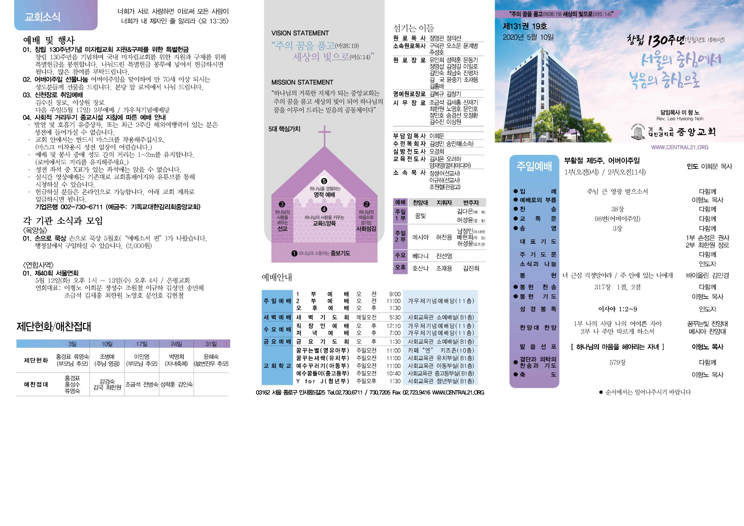 교회소식 교회소식주보 교회소식 주보 교회소식주보 2020년 5월 10일 주일주보 주보 2020-05-09 김성민 첨부파일 2020주보.PNG 중앙새주보_20200510_페이지_2.jpg 중앙새주보_20200510_페이지_1.jpg 목록 이전 :: 2020년 5월 3일 주일... 2020년 5월 17일 주일... :: 다음