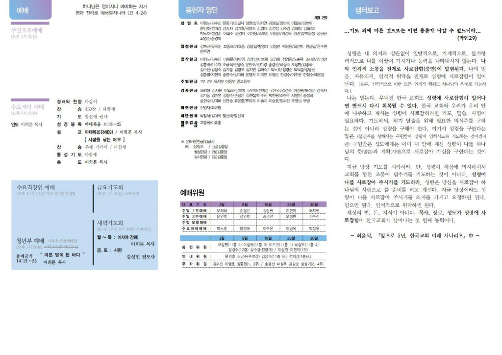 교회소식 교회소식주보 교회소식 주보 교회소식주보 2020년 8월 9일 주일주보 주보 2020-08-08 김성민 첨부파일 2020二쇰낫.PNG 중앙새주보_20200809001.jpg 중앙새주보_20200809002.jpg 목록 이전 :: 2020년 8월 2일 주일... 2020년 8월 16일 주일... :: 다음