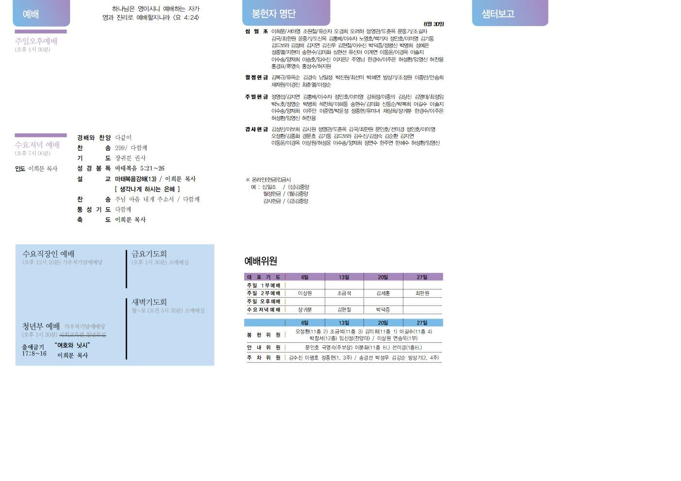 교회소식 교회소식주보 교회소식 주보 교회소식주보 2020년 9월 6일 주일주보 주보 2020-09-05 김성민 첨부파일 2020주보.PNG 중앙새주보_20200906001.jpg 중앙새주보_20200906002.jpg 목록 이전 :: 2020년 8월 30일 주일... 2020년 9월 13일 주일... :: 다음