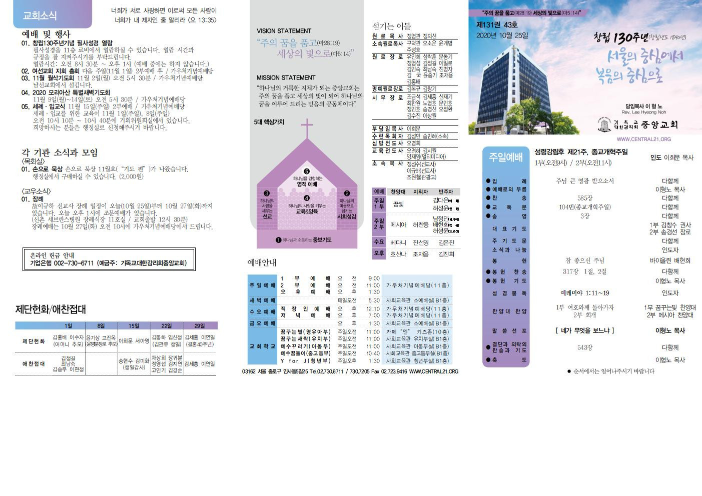 교회소식 교회소식주보 교회소식 주보 교회소식주보 2020년 10월 25일 주일 주보 주보 2020-10-24 김성민 첨부파일 2020주보.PNG 중앙새주보_20201025002.jpg 중앙새주보_20201025001.jpg 목록 이전 :: 2020년 10월 18일 주... 2020년 11월 1일 주일... :: 다음