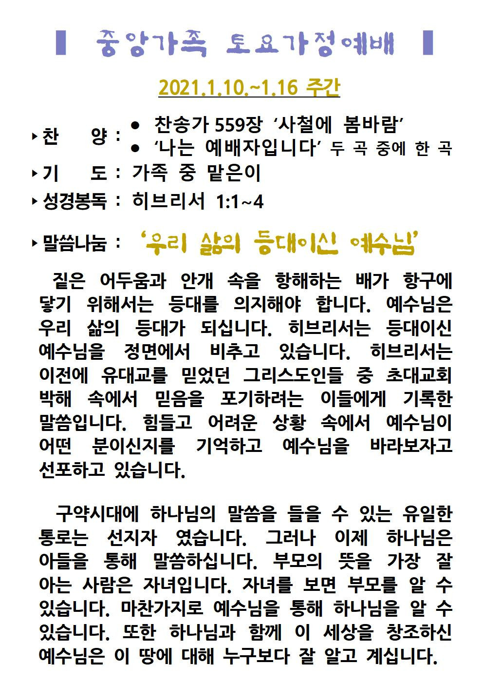 교회소식 교회소식주보 교회소식 주보 교회소식주보 "성공합시다" 가정예배 안내서와 순서지 주보 2021-01-10 김성민 첨부파일 성공합시다썸네일.JPG KakaoTalk_20210110_110650582.jpg 중앙교회 성공합시다 엽서 뒷면 10X15.jpg 112.jpg 114.jpg 113.jpg 111.jpg 목록 이전 :: 2021년 1월 10일 주일... 2021년 1월 17일 주일... :: 다음