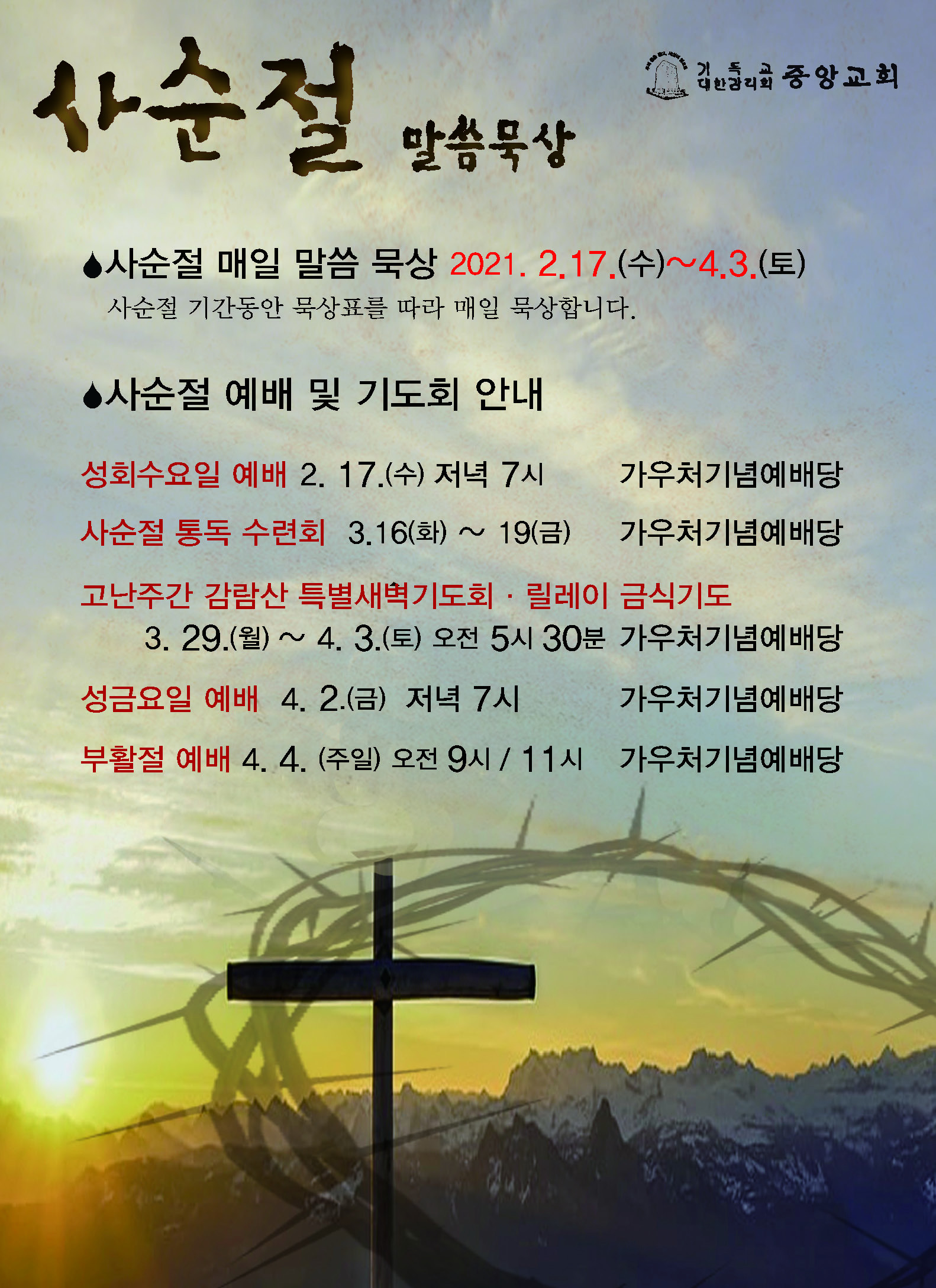 교회소식 교회소식주보 교회소식 주보 교회소식주보 2021년 사순절 말씀묵상 주보 2021-02-16 김성민 첨부파일 사순절.JPG 중앙사순절엽서2021indd (2)_페이지_1.jpg 중앙사순절엽서2021indd (2)_페이지_2.jpg 목록 이전 :: 2021년 2월 14일 주일... 2021년 2월 21일 주일... :: 다음