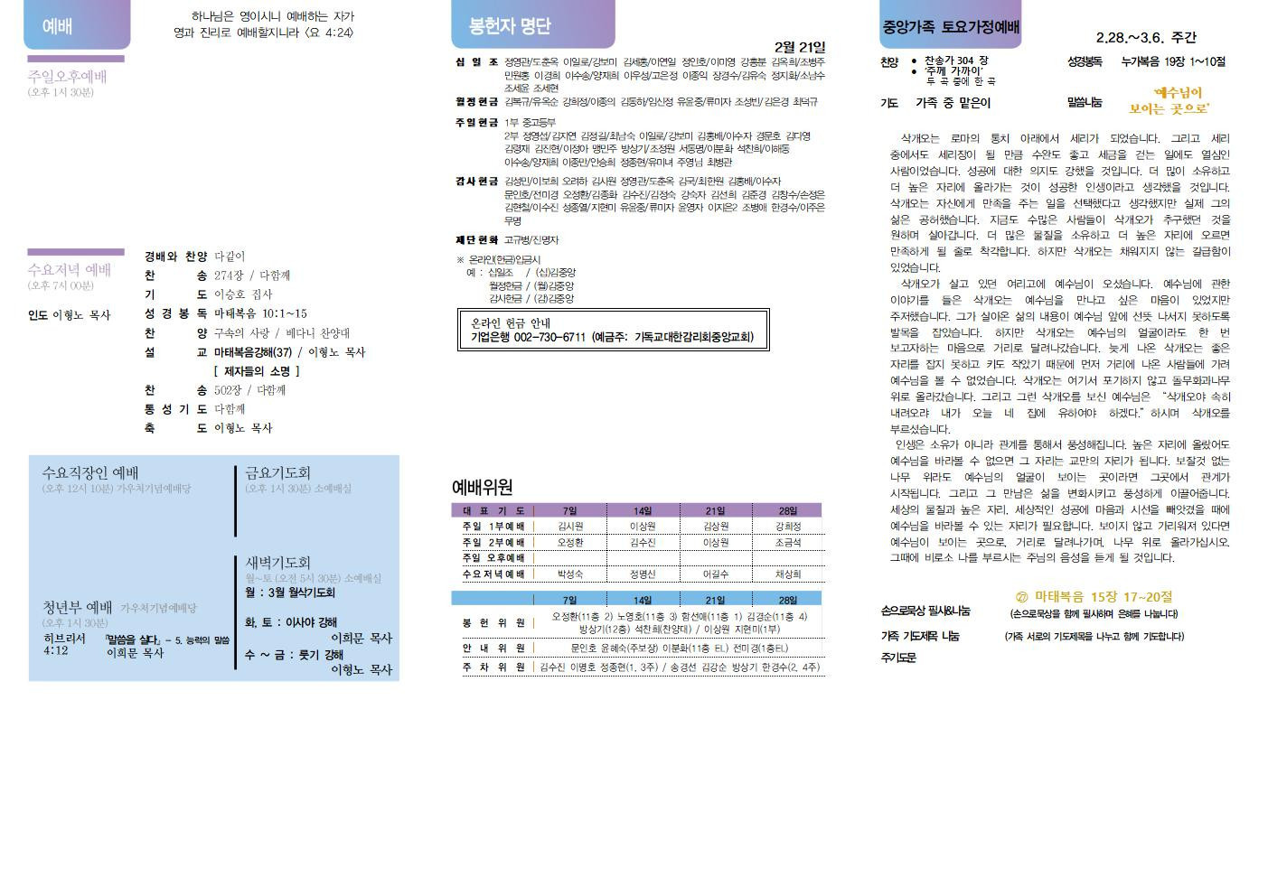 교회소식 교회소식주보 교회소식 주보 교회소식주보 2021년 2월 28일 주일 주보 주보 2021-02-27 오려하 첨부파일 주보 썸네일.jpeg 중앙새주보_210228002.jpg 중앙새주보_210228001.jpg 중앙가족 가정예배서 20210228001.jpg 중앙가족 가정예배서 20210228002.jpg 목록 이전 :: 2021년 2월 21일 주일... 2021년 3월 7일 주일... :: 다음