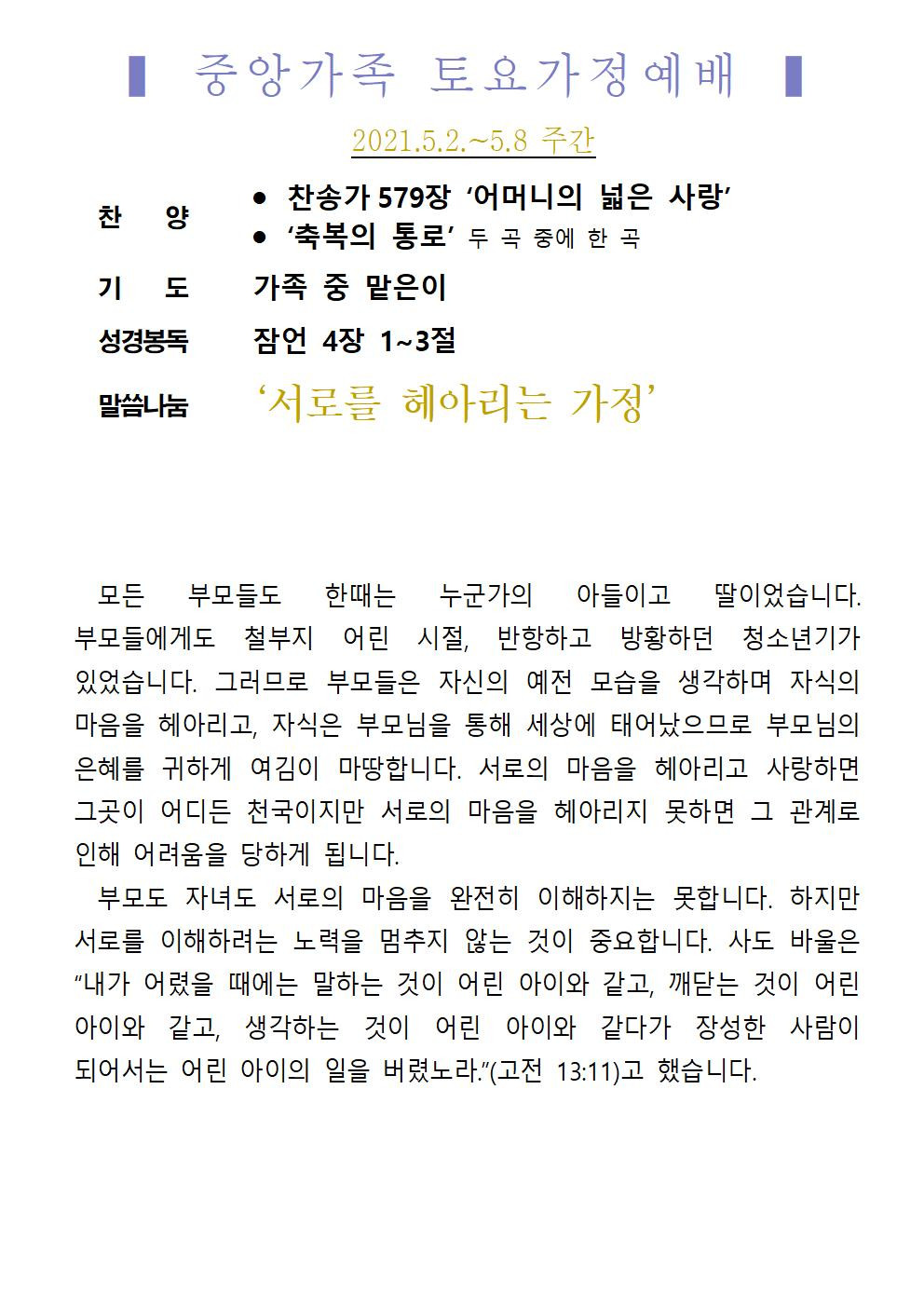 교회소식 교회소식주보 교회소식 주보 교회소식주보 2021년 5월 2일 주일 주보 주보 2021-04-30 오려하 첨부파일 2021주보썸네일.JPG 중앙가족 가정예배서 20210502001.jpg 중앙가족 가정예배서 20210502002.jpg 중앙새주보_210502002.jpg 중앙새주보_210502001.jpg 목록 이전 :: 2021년 4월 25일 주일... 2021년 5월 9일 주일... :: 다음