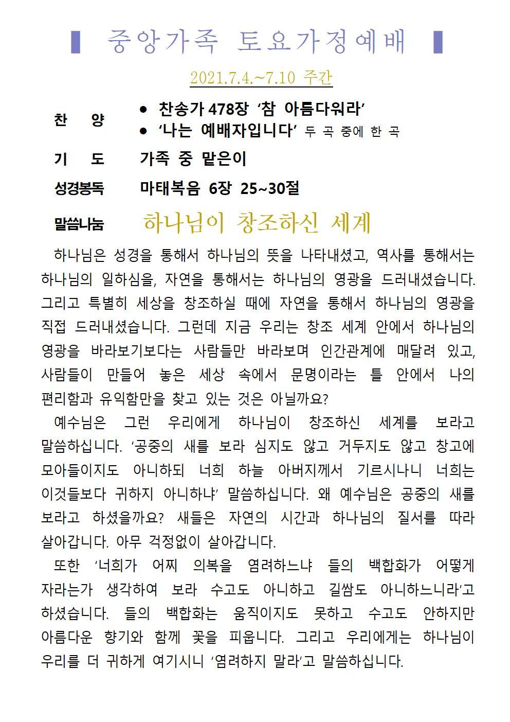 교회소식 교회소식주보 교회소식 주보 교회소식주보 2021년 7월 4일 주일 주보 주보 2021-07-02 오려하 첨부파일 2021주보썸네일.JPG 중앙가족 가정예배서 20210704002.jpg 중앙가족 가정예배서 20210704001.jpg 중앙새주보_210704002.jpg 중앙새주보_210704001.jpg 목록 이전 :: 2021년 6월 27일 주일... 2021년 7월 11일 주일... :: 다음