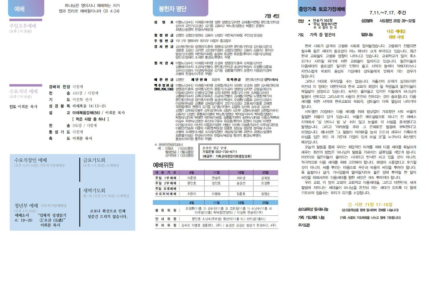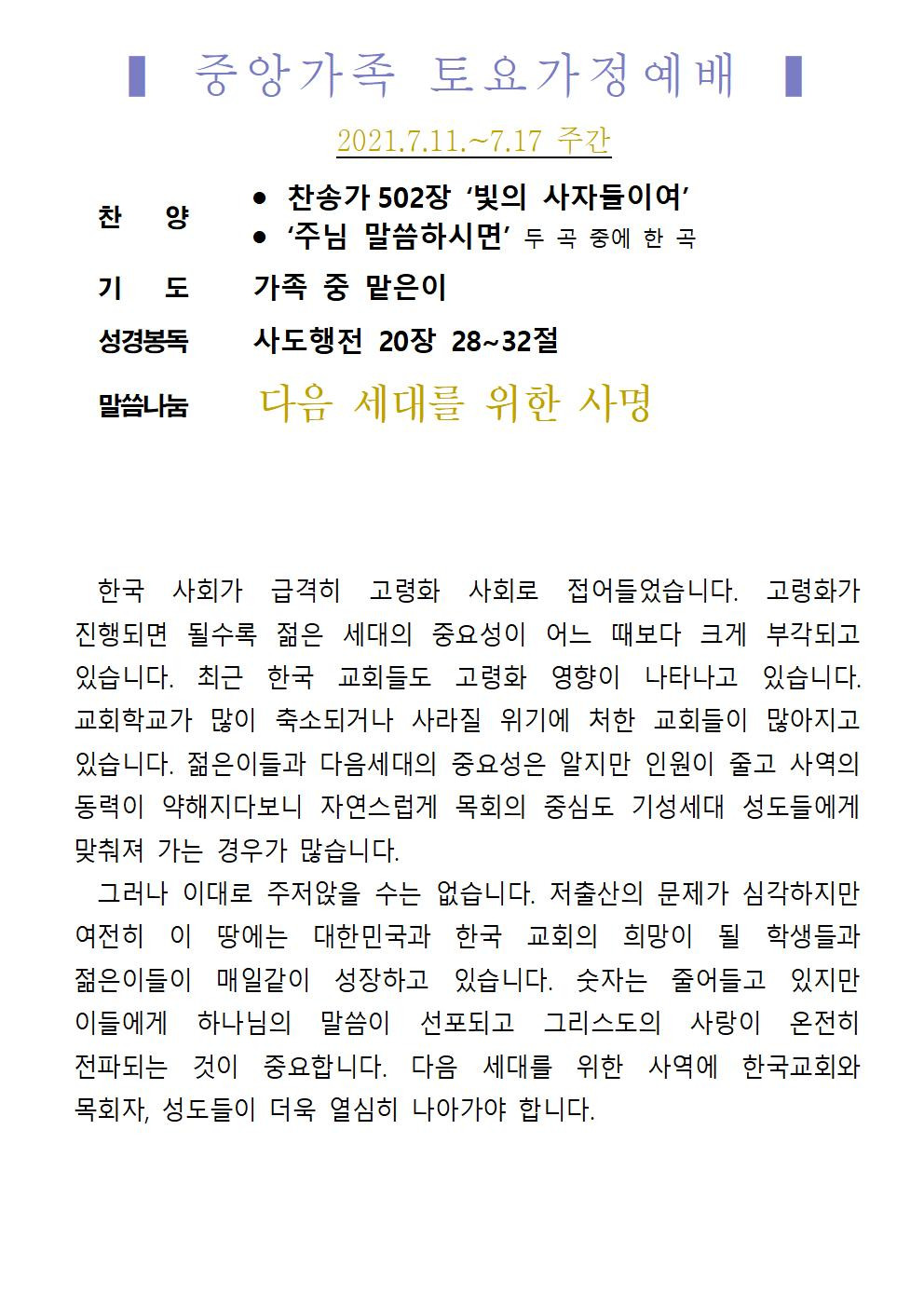 교회소식 교회소식주보 교회소식 주보 교회소식주보 2021년 7월 11일 주일 주보 주보 2021-07-09 오려하 첨부파일 2021주보썸네일.JPG 중앙가족 가정예배서 20210711001.jpg 중앙새주보_210711001.jpg 중앙가족 가정예배서 20210711002.jpg 중앙새주보_210711002.jpg 목록 이전 :: 2021년 7월 4일 주일... 2021년 7월 18일 주일... :: 다음