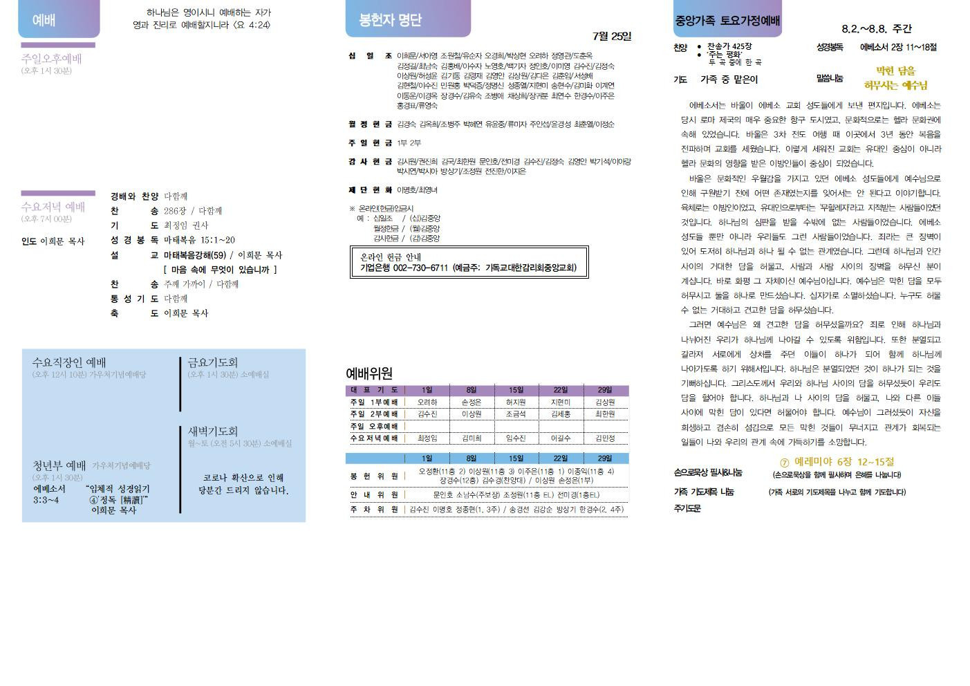 교회소식 교회소식주보 교회소식 주보 교회소식주보 2021년 8월 1일 주일 주보 주보 2021-07-30 오려하 첨부파일 2021주보썸네일.JPG 중앙새주보_210801001.jpg 중앙가족 가정예배서 20210801002.jpg 중앙가족 가정예배서 20210801001.jpg 중앙새주보_210801002.jpg 목록 이전 :: 2021년 7월 25일 주일... 2021년 8월 8일 주일... :: 다음