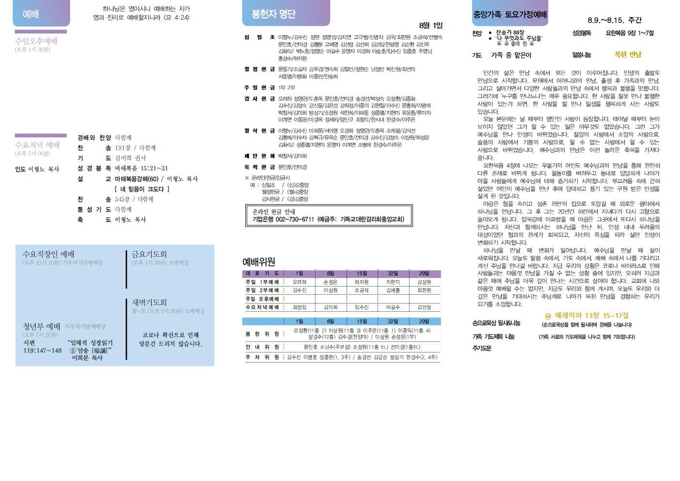 교회소식 교회소식주보 교회소식 주보 교회소식주보 2021년 8월 8일 주일 주보 주보 2021-08-07 오려하 첨부파일 2021주보썸네일.JPG 중앙가족 가정예배서 20210808001.jpg 중앙새주보_210808001.jpg 중앙가족 가정예배서 20210808002.jpg 중앙새주보_210808002.jpg 목록 이전 :: 2021년 8월 1일 주일... 2021년 8월 15일 주일... :: 다음