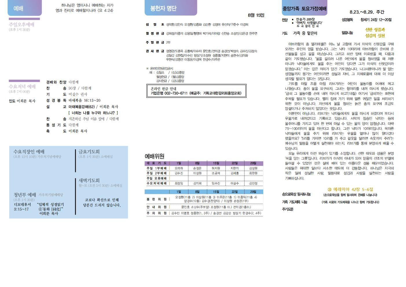 교회소식 교회소식주보 교회소식 주보 교회소식주보 2021년 8월 22일 주일 주보 주보 2021-08-21 오려하 첨부파일 2021주보썸네일.JPG 중앙가족 가정예배서 20210822002.jpg 중앙가족 가정예배서 20210822001.jpg 중앙새주보_210822001.jpg 중앙새주보_210822002.jpg 목록 이전 :: 2021년 8월 15일 주일... 2021년 8월 29일 주일... :: 다음