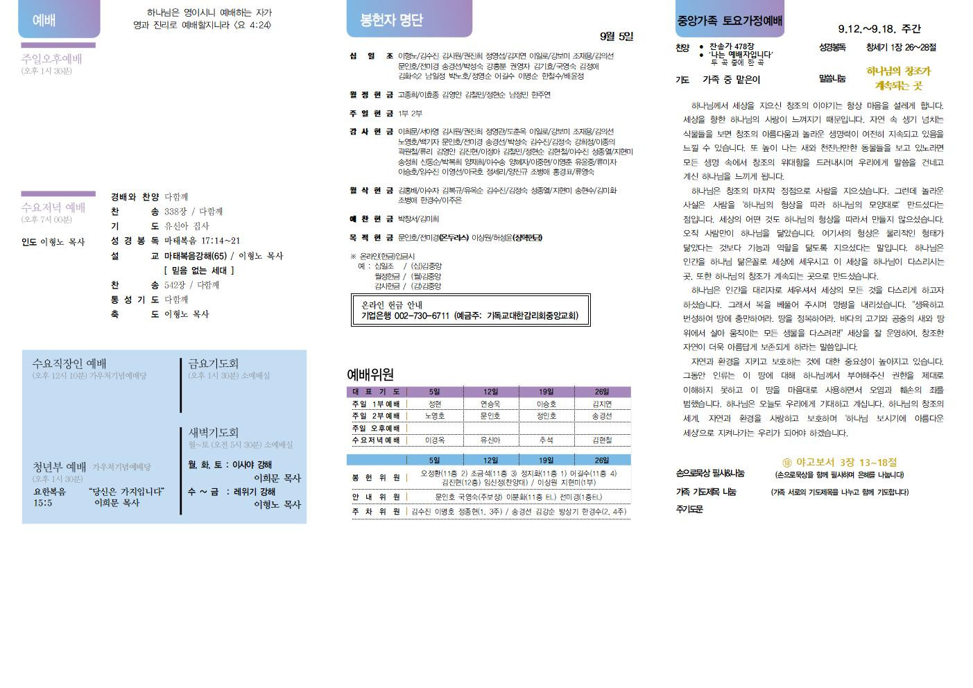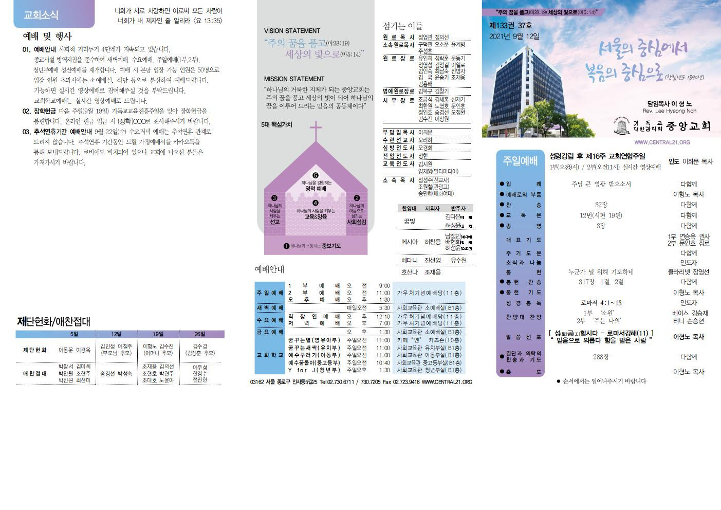 교회소식 교회소식주보 교회소식 주보 교회소식주보 2021년 9월 12일 주일 주보 주보 2021-09-10 오려하 첨부파일 2021주보썸네일.JPG 중앙가족 가정예배서 20210912001.jpg 중앙가족 가정예배서 20210912002.jpg 중앙새주보_210912001.jpg 중앙새주보_210912002.jpg 목록 이전 :: 2021년 9월 5일 주일... 2021년 9월 19일 주일... :: 다음