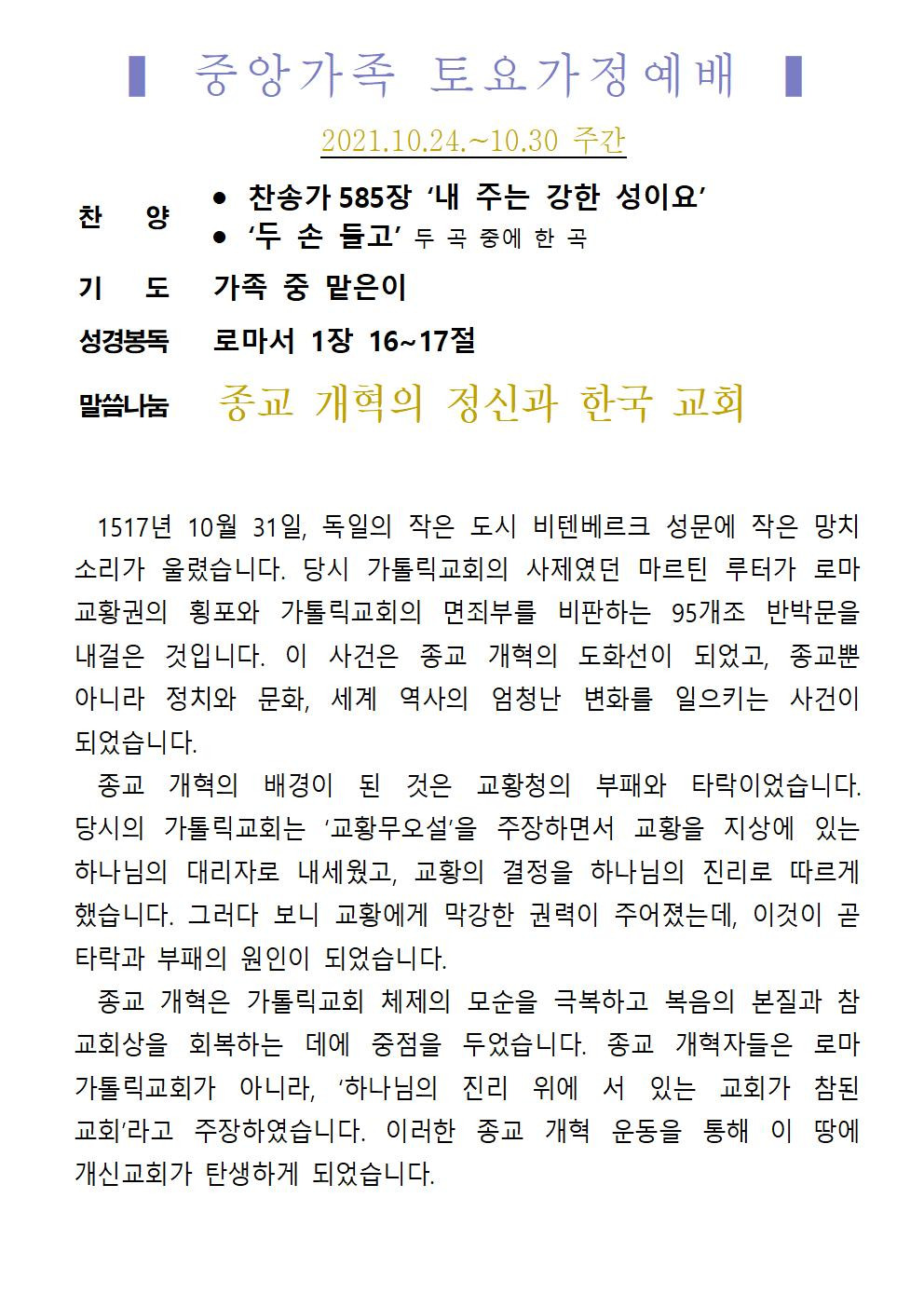교회소식 교회소식주보 교회소식 주보 교회소식주보 2021년 10월 24일 주일 주보 주보 2021-10-22 오려하 첨부파일 2021주보썸네일.JPG 중앙가족 가정예배서 20211024001.jpg 중앙가족 가정예배서 20211024002.jpg 중앙새주보_211024001.jpg 중앙새주보_211024002.jpg 목록 이전 :: 2021년 10월 17일 주... 2021년 10월 31일 주... :: 다음