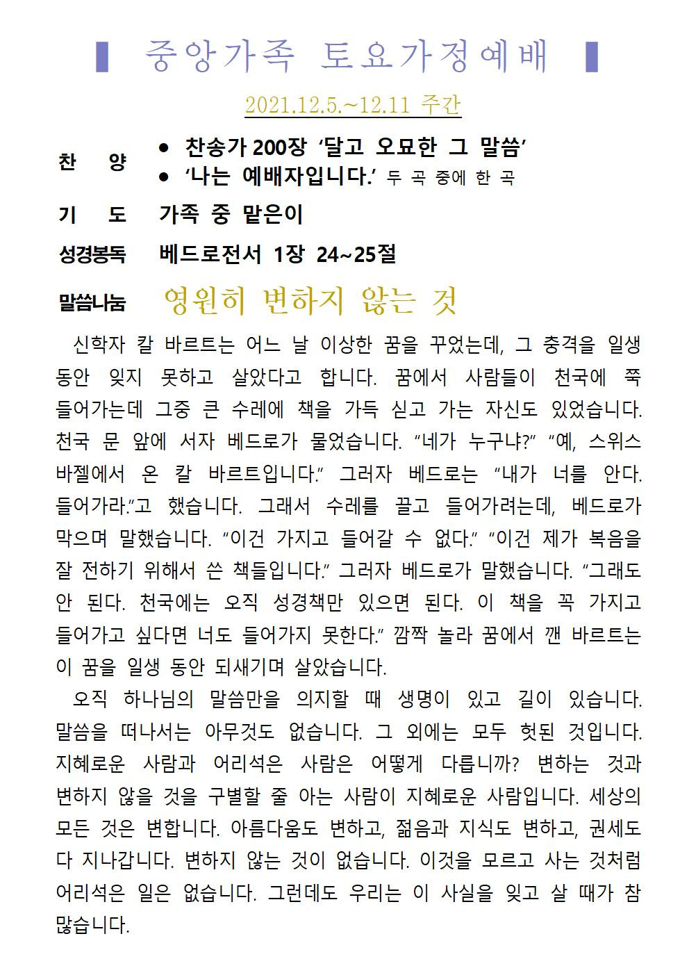 교회소식 교회소식주보 교회소식 주보 교회소식주보 2021년 12월 5일 주일 주보 주보 2021-12-03 오려하 첨부파일 2021주보썸네일.JPG 중앙가족 가정예배서 20211205001.jpg 중앙가족 가정예배서 20211205002.jpg 중앙새주보_211205001.jpg 중앙새주보_211205002.jpg 목록 이전 :: 2021년 11월 28일 주... 2021년 12월 12일 주... :: 다음
