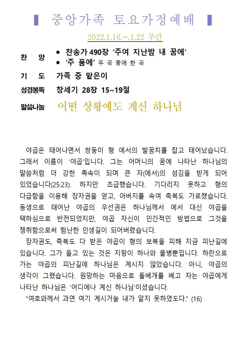 교회소식 교회소식주보 교회소식 주보 교회소식주보 2022년 1월 16일 주일 주보 주보 2022-01-15 오려하 첨부파일 2022주보썸네일.JPG 중앙가족 가정예배서 20220116001.jpg 중앙새주보_220116001.jpg 중앙새주보_220116002.jpg 중앙가족 가정예배서 20220116002.jpg 목록 이전 :: 2022년 1월 9일 주일... 2022년 1월 23일 주일... :: 다음