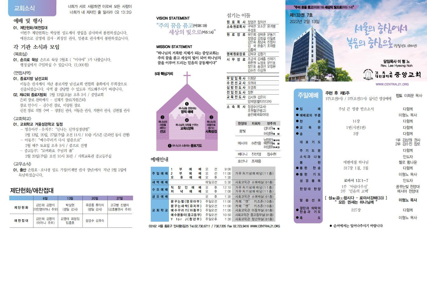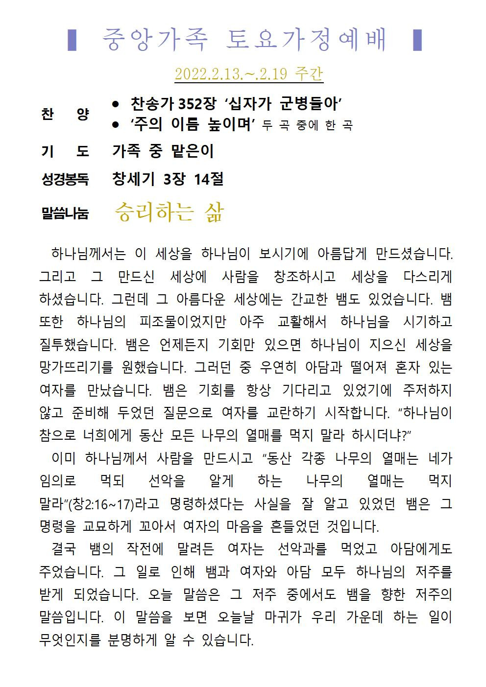 교회소식 교회소식주보 교회소식 주보 교회소식주보 2022년 2월 13일 주일 주보 주보 2022-02-11 오려하 첨부파일 2022주보썸네일.JPG 중앙가족 가정예배서 20220213002.jpg 중앙가족 가정예배서 20220213001.jpg 중앙새주보_220213001.jpg 중앙새주보_220213002.jpg 목록 이전 :: 2022년 2월 6일 주일... 2022년 2월 20일 주일... :: 다음