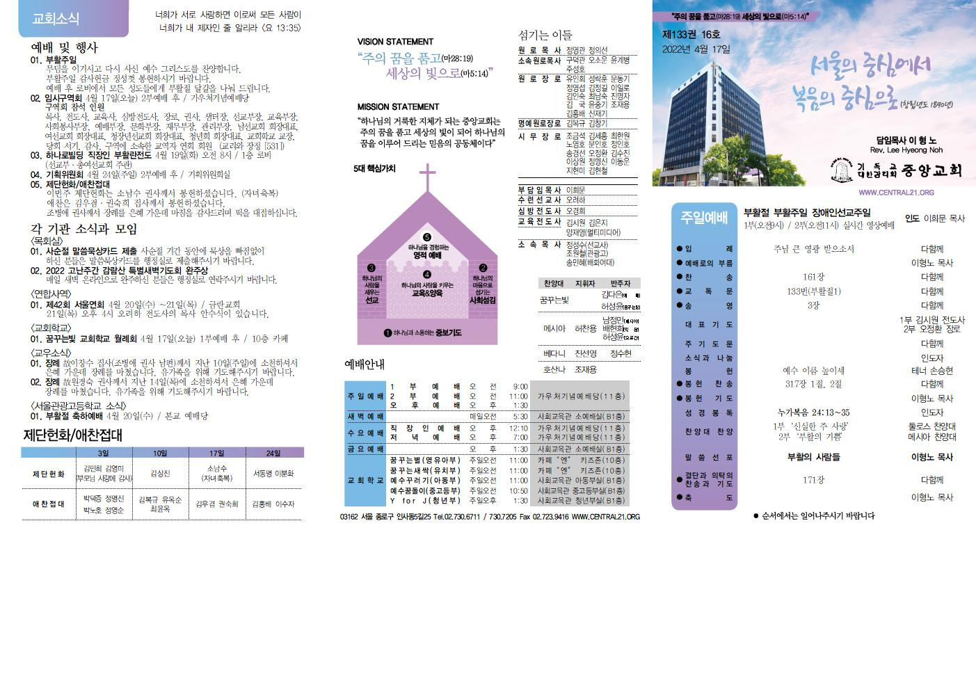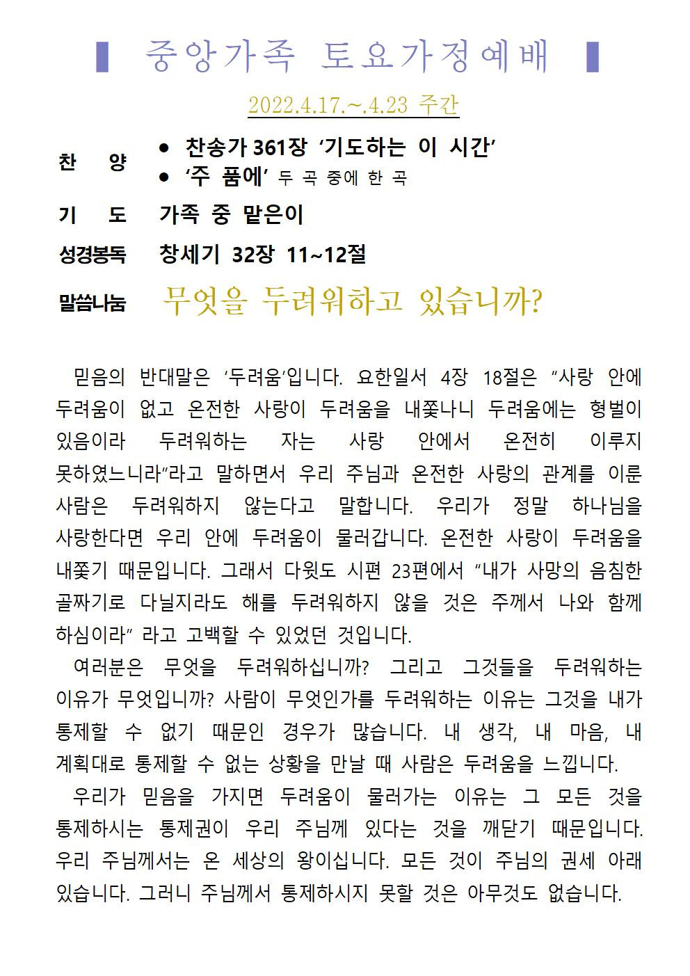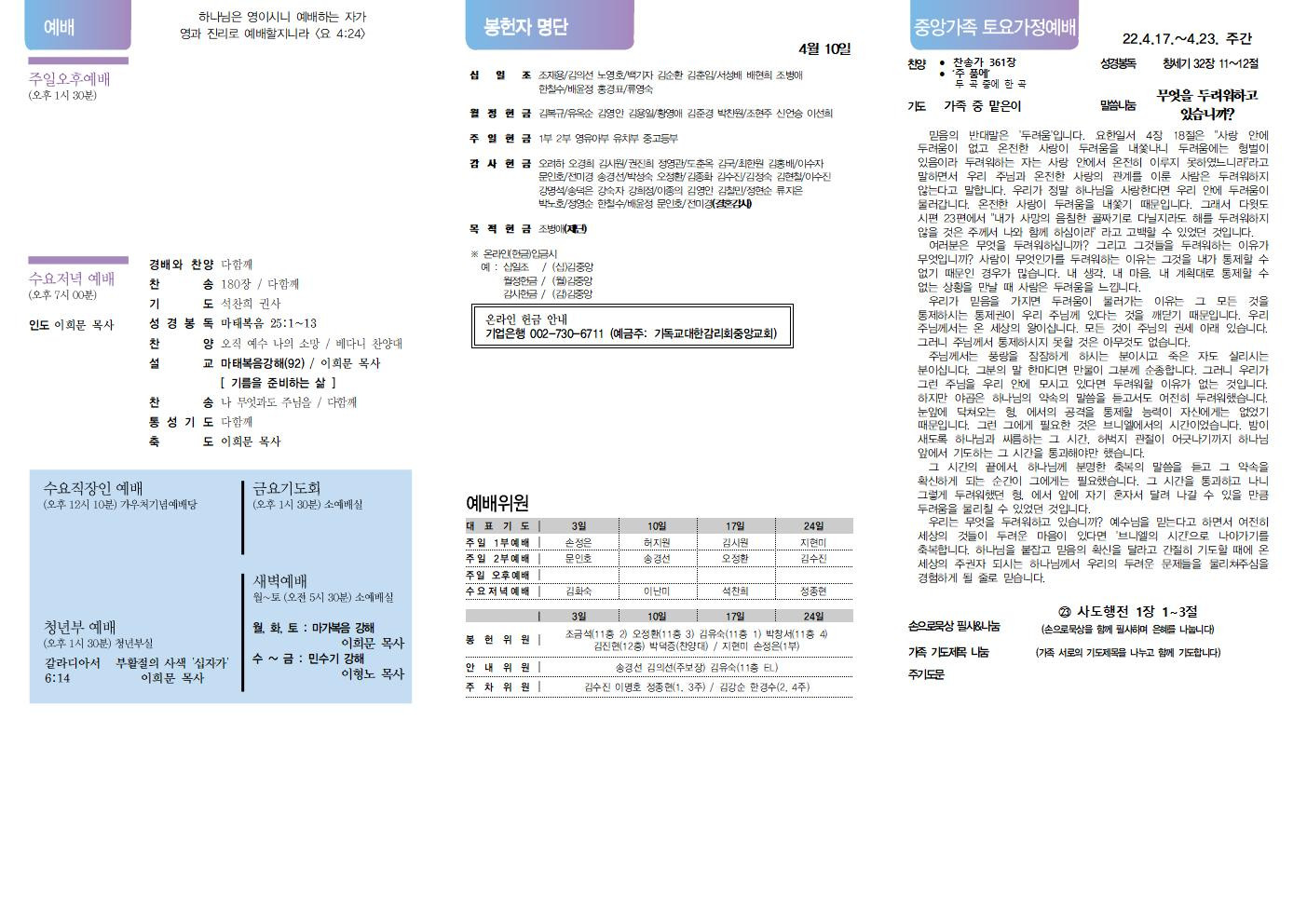 교회소식 교회소식주보 교회소식 주보 교회소식주보 2022년 4월 17일 주일 주보 주보 2022-04-15 오려하 첨부파일 2022주보썸네일.JPG 중앙가족 가정예배서 20220417001.jpg 중앙가족 가정예배서 20220417002.jpg 중앙새주보_220417002.jpg 중앙새주보_220417001.jpg 목록 이전 :: 2022년 4월 10일 주일... 2022년 4월 24일 주일... :: 다음