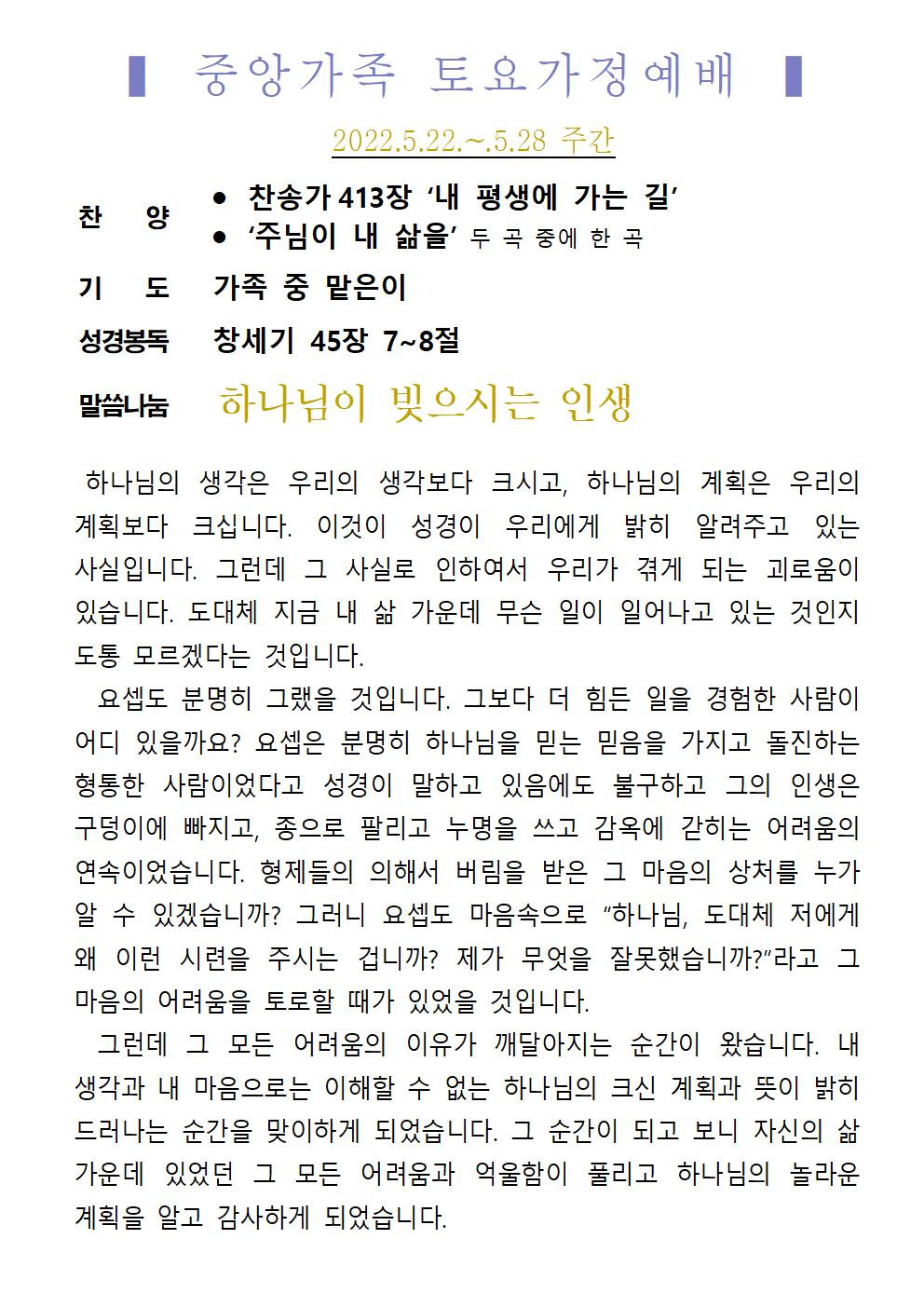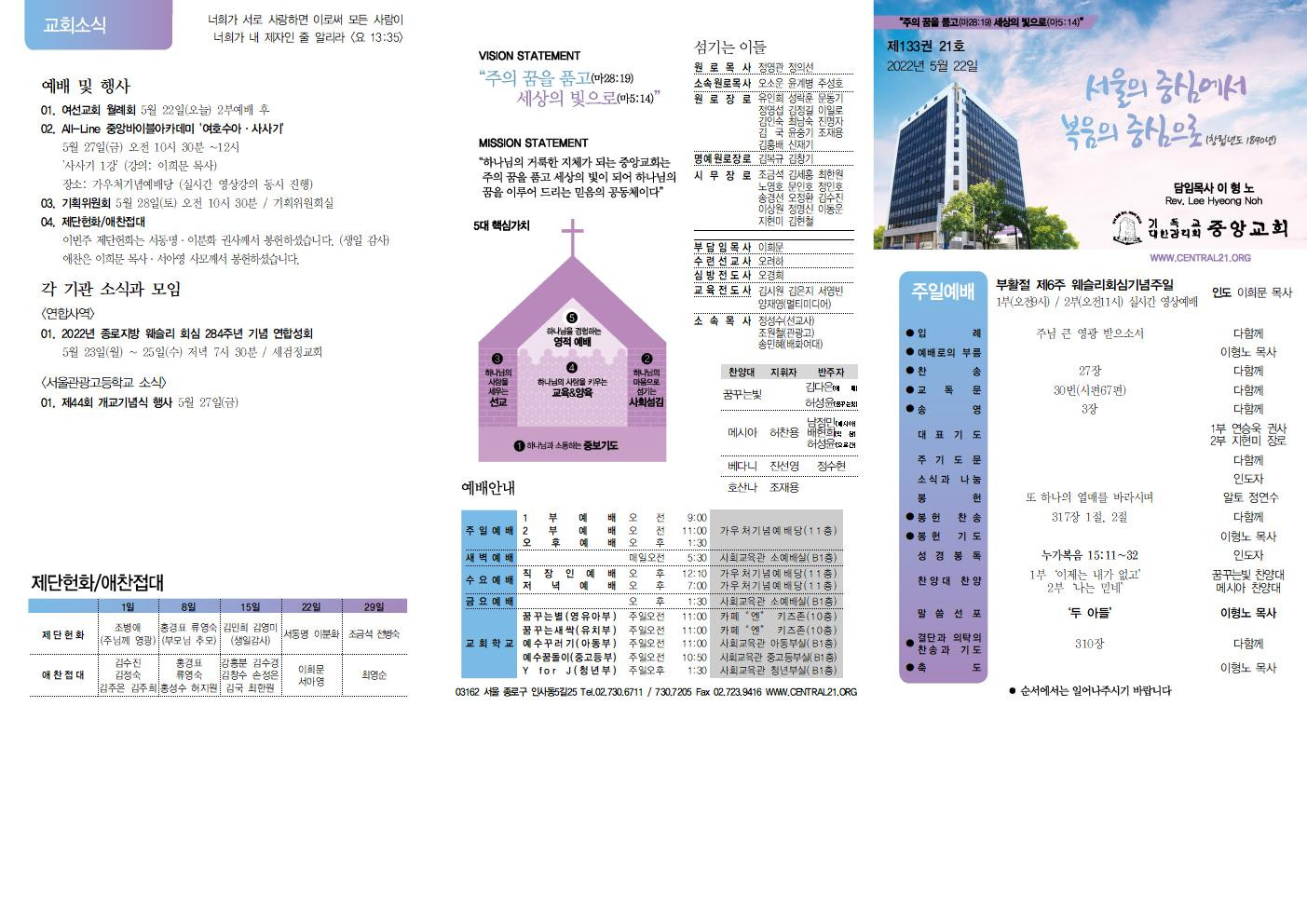교회소식 교회소식주보 교회소식 주보 교회소식주보 2022년 5월 22일 주일 주보 주보 2022-05-20 오려하 첨부파일 2022주보썸네일.JPG 중앙가족 가정예배서 20220522001.jpg 중앙가족 가정예배서 20220522002.jpg 중앙새주보_220522001.jpg 중앙새주보_220522002.jpg 목록 이전 :: 2022년 5월 15일 주일... 2022년 5월 29일 주일... :: 다음