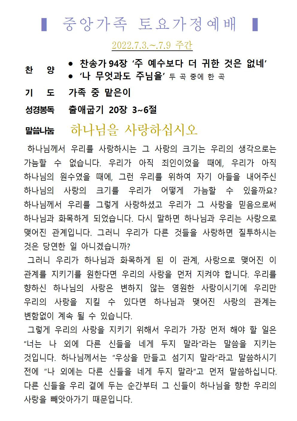 교회소식 교회소식주보 교회소식 주보 교회소식주보 2022년 7월 3일 주일 주보 주보 2022-07-01 오려하 첨부파일 2022주보썸네일.JPG 중앙가족 가정예배서 20220703001.jpg 중앙가족 가정예배서 20220703002.jpg 중앙새주보_220703001.jpg 중앙새주보_220703002.jpg 목록 이전 :: 2022년 6월 26일 주일... 2022년 7월 10일 주일... :: 다음
