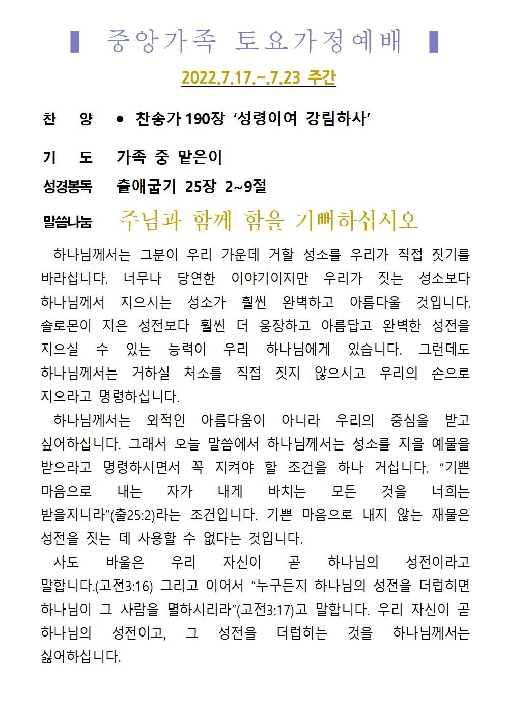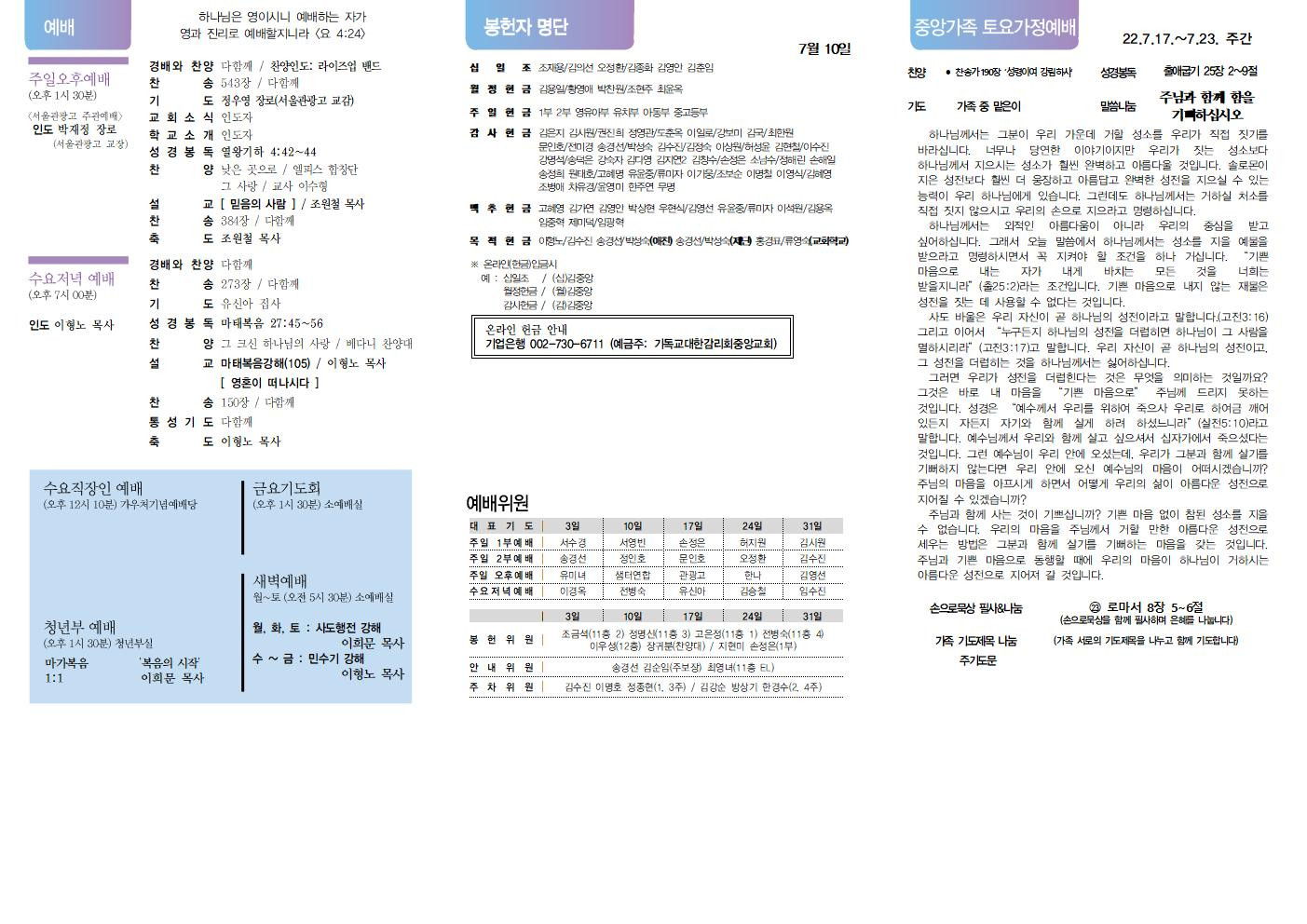 교회소식 교회소식주보 교회소식 주보 교회소식주보 2022년 7월 17일 주일 주보 주보 2022-07-15 김은지 첨부파일 2022주보썸네일.JPG 중앙새주보_220717001.jpg 중앙새주보_220717002.jpg 중앙가족 가정예배서 20220717001.jpg 중앙가족 가정예배서 20220717002.jpg 목록 이전 :: 2022년 7월 10일 주일... 2022년 7월 24일 주일... :: 다음