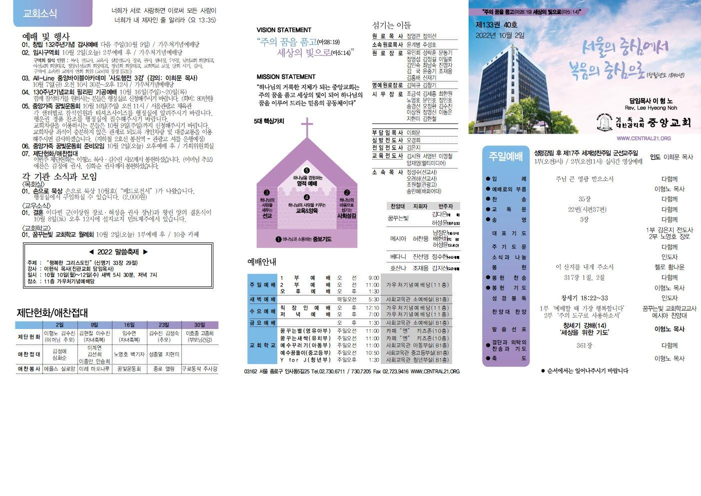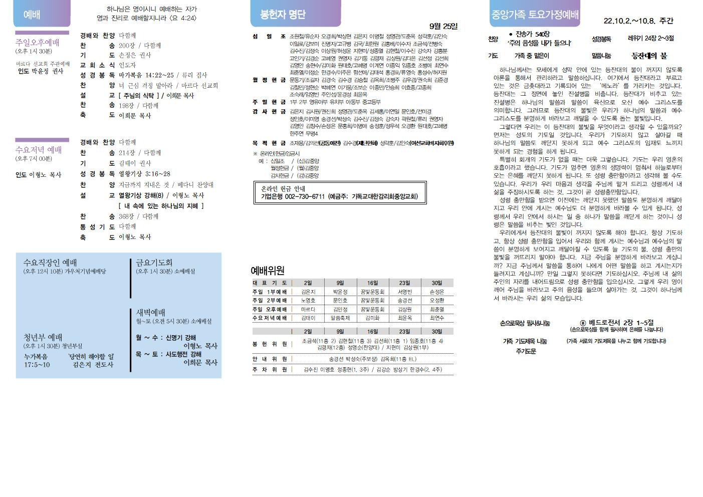 교회소식 교회소식주보 교회소식 주보 교회소식주보 2022년 10월 2일 주일 주보 주보 2022-09-30 김은지 첨부파일 2022주보썸네일.JPG 중앙새주보_221002001.jpg 중앙새주보_221002002.jpg 중앙가족 가정예배서 20221002001.jpg 중앙가족 가정예배서 20221002002.jpg 목록 이전 :: 2022년 9월 25일 주일... 2022년 10월 9일 주일... :: 다음