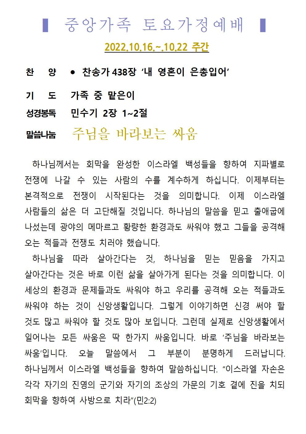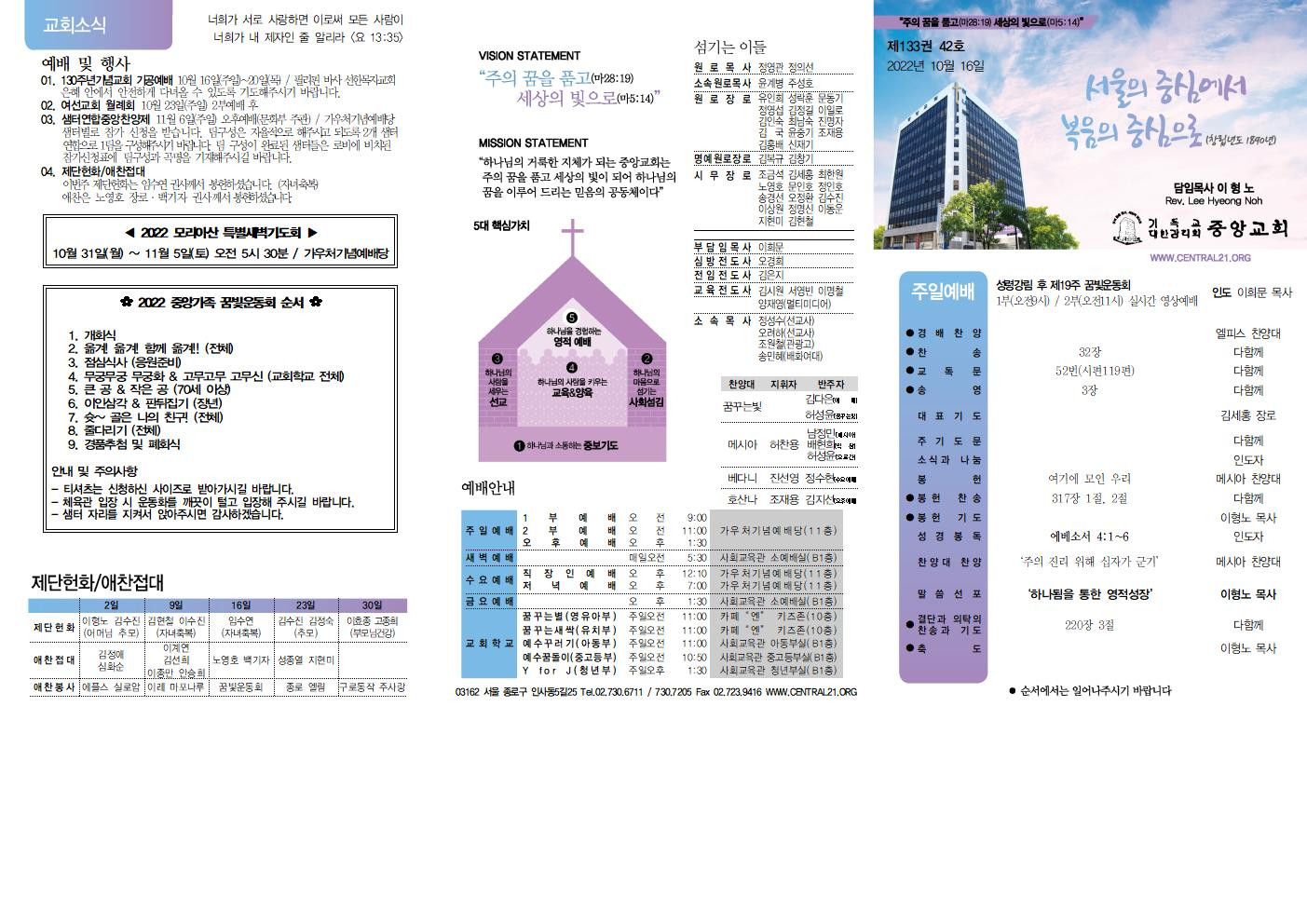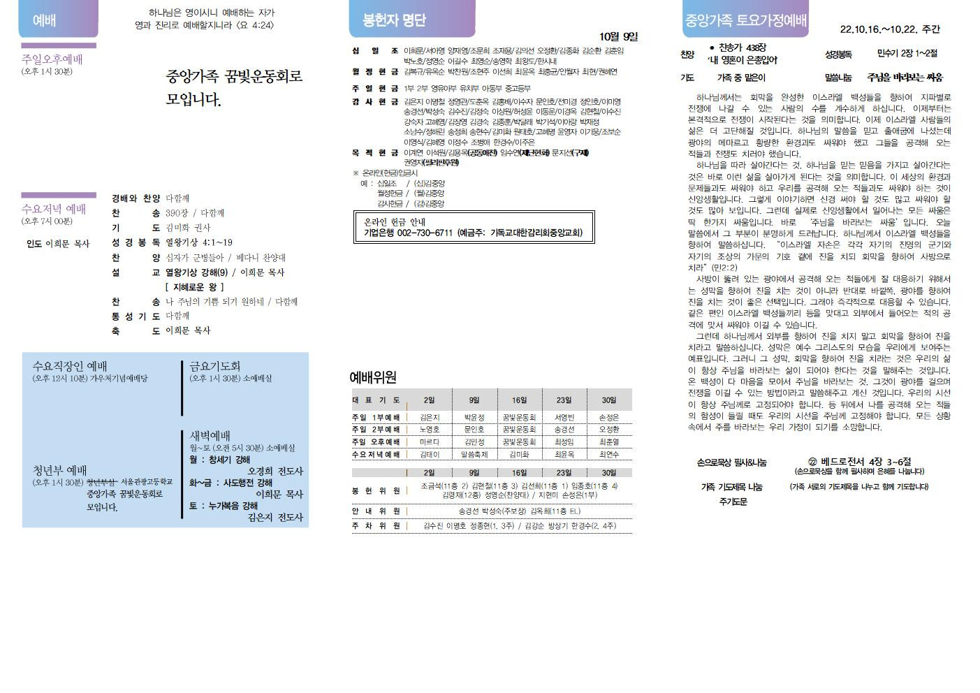 교회소식 교회소식주보 교회소식 주보 교회소식주보 2022년 10월 16일 주일 주보 주보 2022-10-14 김은지 첨부파일 2022주보썸네일.JPG 중앙가족 가정예배서 20221016001.jpg 중앙가족 가정예배서 20221016002.jpg 중앙새주보_221016001.jpg 중앙새주보_221016002.jpg 목록 이전 :: 2022년 10월 9일 주일... 2022년 10월 23일 주... :: 다음
