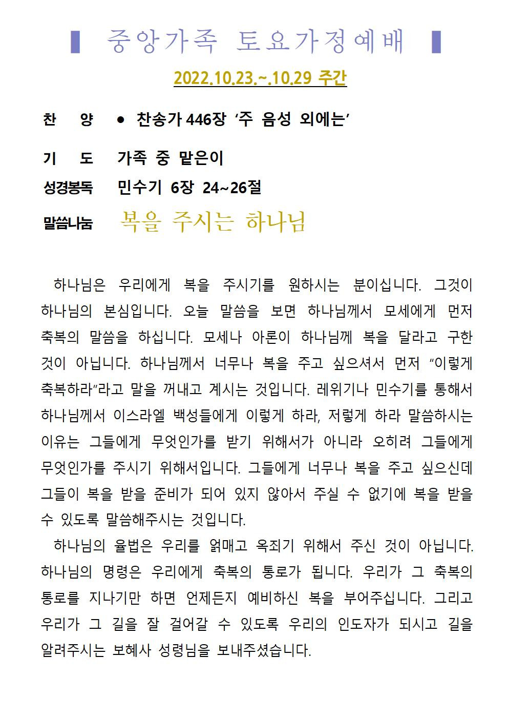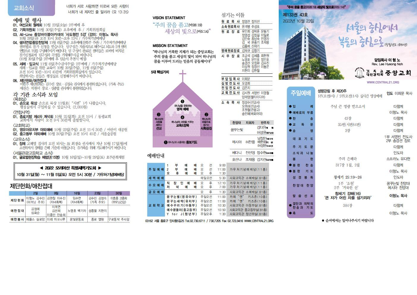 교회소식 교회소식주보 교회소식 주보 교회소식주보 2022년 10월 23일 주일 주보 주보 2022-10-21 김은지 첨부파일 2022주보썸네일.JPG 중앙새주보_221023001.jpg 중앙새주보_221023002.jpg 중앙가족 가정예배서 20221023002.jpg 중앙가족 가정예배서 20221023001.jpg 2022주보썸네일.JPG 목록 이전 :: 2022년 10월 16일 주... 2022년 10월 30일 주... :: 다음