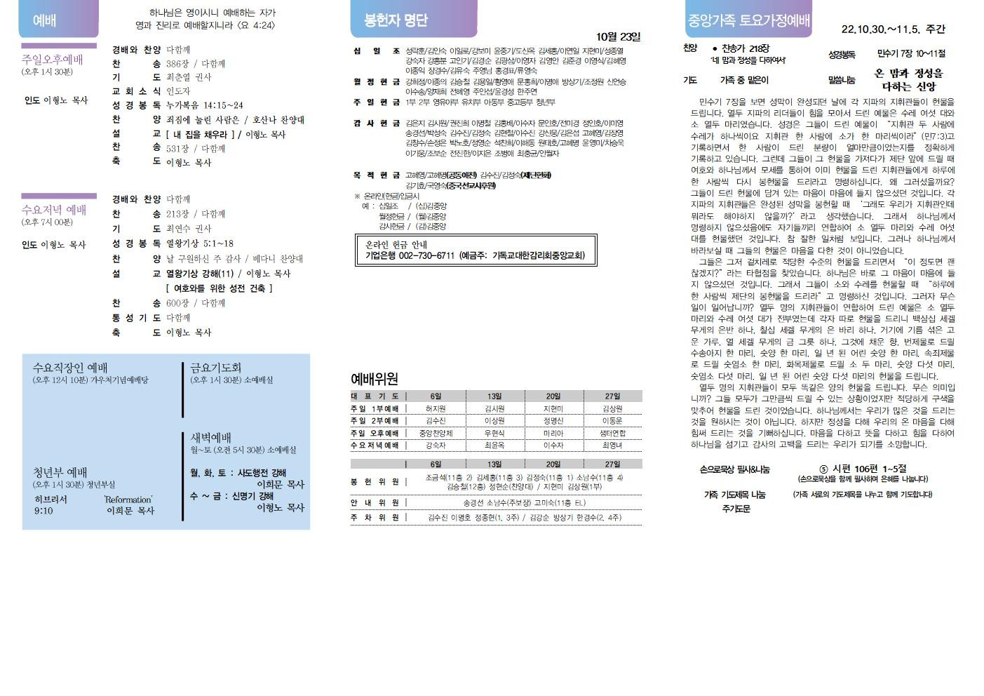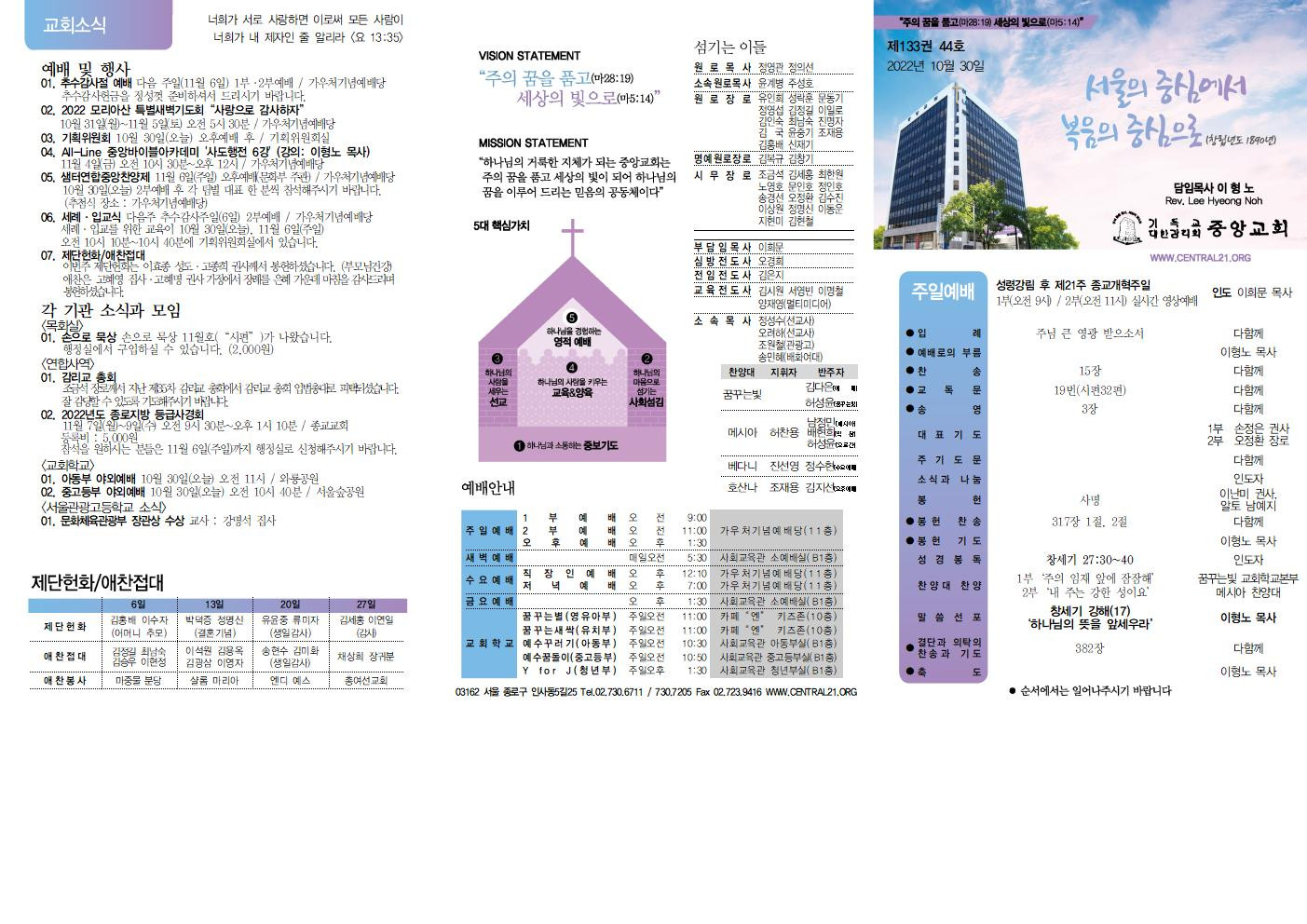 교회소식 교회소식주보 교회소식 주보 교회소식주보 2022년 10월 30일 주일 주보 주보 2022-10-25 김은지 첨부파일 2022주보썸네일.JPG 중앙새주보_221030001.jpg 중앙새주보_221030002.jpg 중앙가족 가정예배서 20221030001.jpg 중앙가족 가정예배서 20221030002.jpg 목록 이전 :: 2022년 10월 23일 주... 2022년 11월 6일 주일... :: 다음