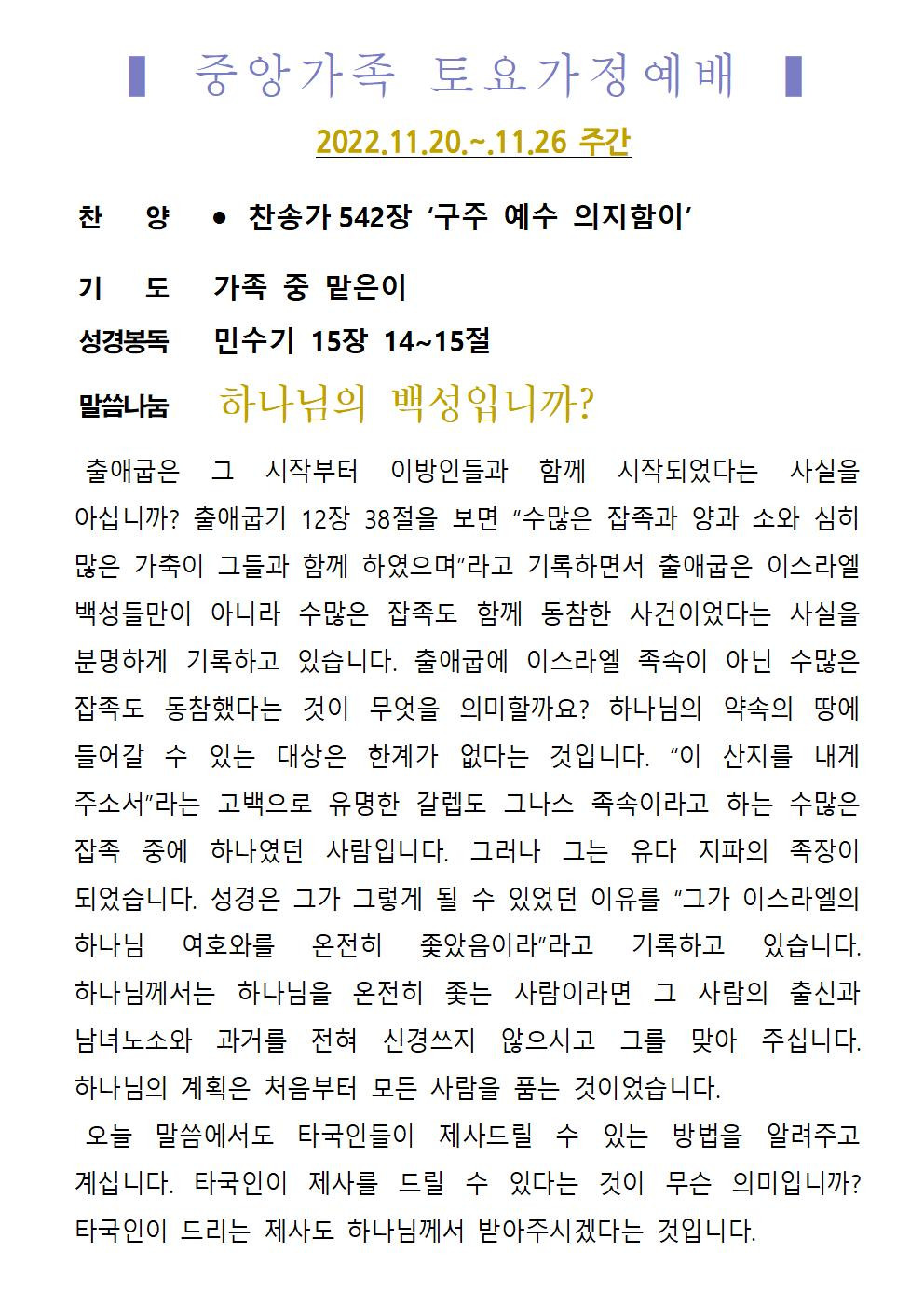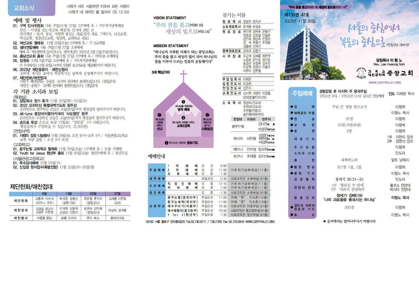 교회소식 교회소식주보 교회소식 주보 교회소식주보 2022년 11월 20일 주일 주보 주보 2022-11-19 김은지 첨부파일 2022주보썸네일.JPG 중앙가족 가정예배서 20221120001.jpg 중앙새주보_221120001.jpg 중앙가족 가정예배서 20221120002.jpg 중앙새주보_221120002.jpg 목록 이전 :: 2022년 11월 13일 주... 2022년 11월 27일 주... :: 다음