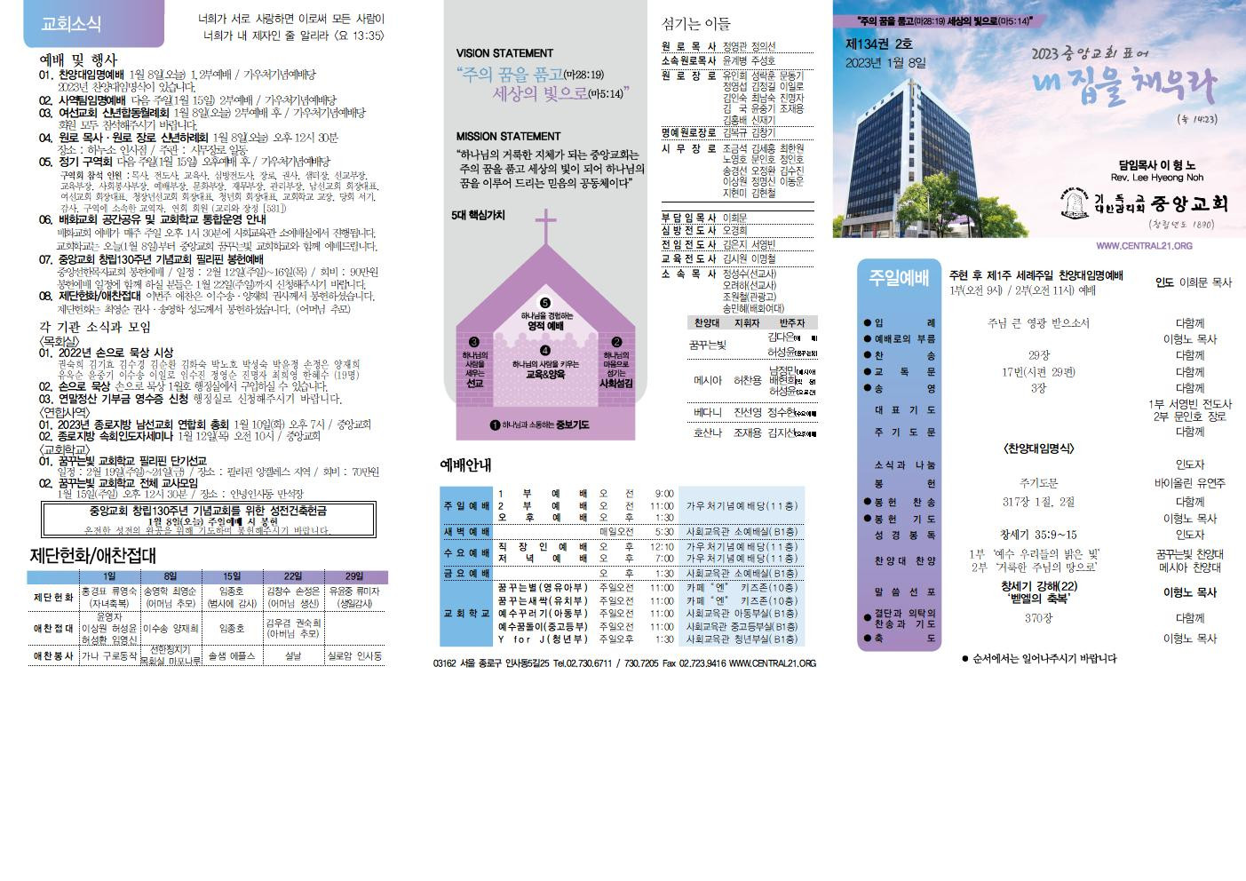 교회소식 교회소식주보 교회소식 주보 교회소식주보 2023년 1월 8일 주일 주보 주보 2023-01-06 김은지 . 첨부파일 2023주보썸네일.jpg 중앙가족 가정예배서 20220108001.jpg 중앙새주보_230108001.jpg 중앙새주보_230108002.jpg 중앙가족 가정예배서 20220108002.jpg 목록 이전 :: 2023년 1월 1일 주일... 2023년 1월 15일 주일... :: 다음