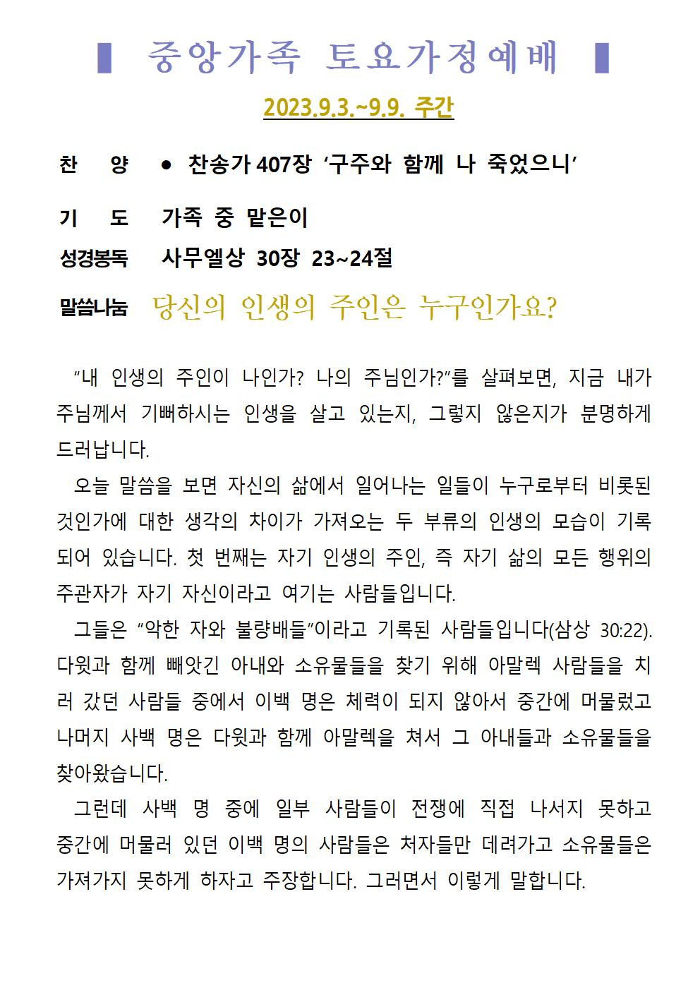 교회소식 교회소식주보 교회소식 주보 교회소식주보 2023년 9월 3일 주일 주보 주보 2023-09-01 김은지 첨부파일 2023주보썸네일.jpg 중앙가족 가정예배서 20230903002.jpg 중앙가족 가정예배서 20230903001.jpg 중앙새주보_230903001.jpg 중앙새주보_230903002.jpg 목록 이전 :: 2023년 8월 27일 주일... 2023년 9월 10일 주일... :: 다음
